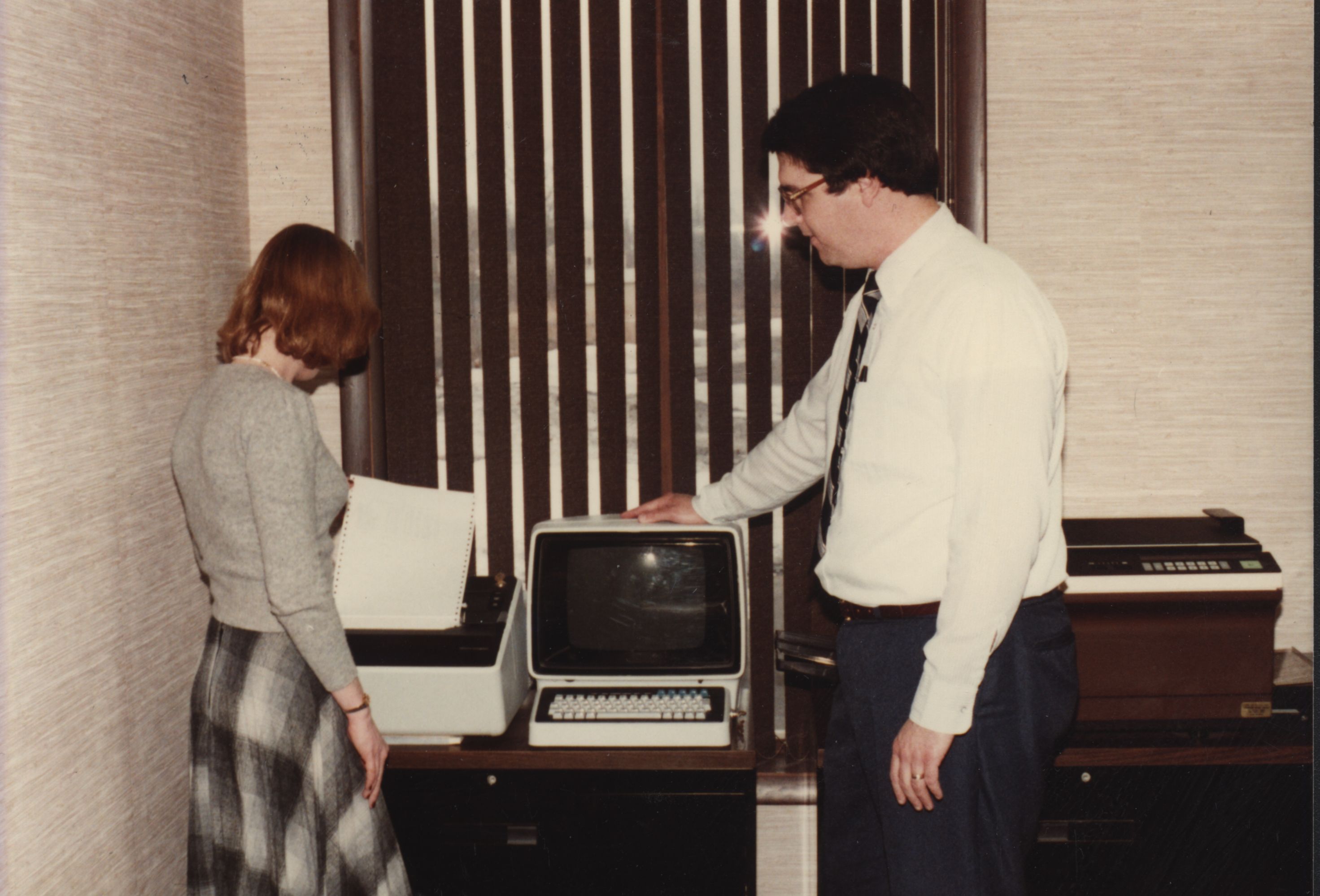 Bonnie Lohr and Patrick Barrett, Port Huron Campus, Walsh College (from back of photo, date unknown)