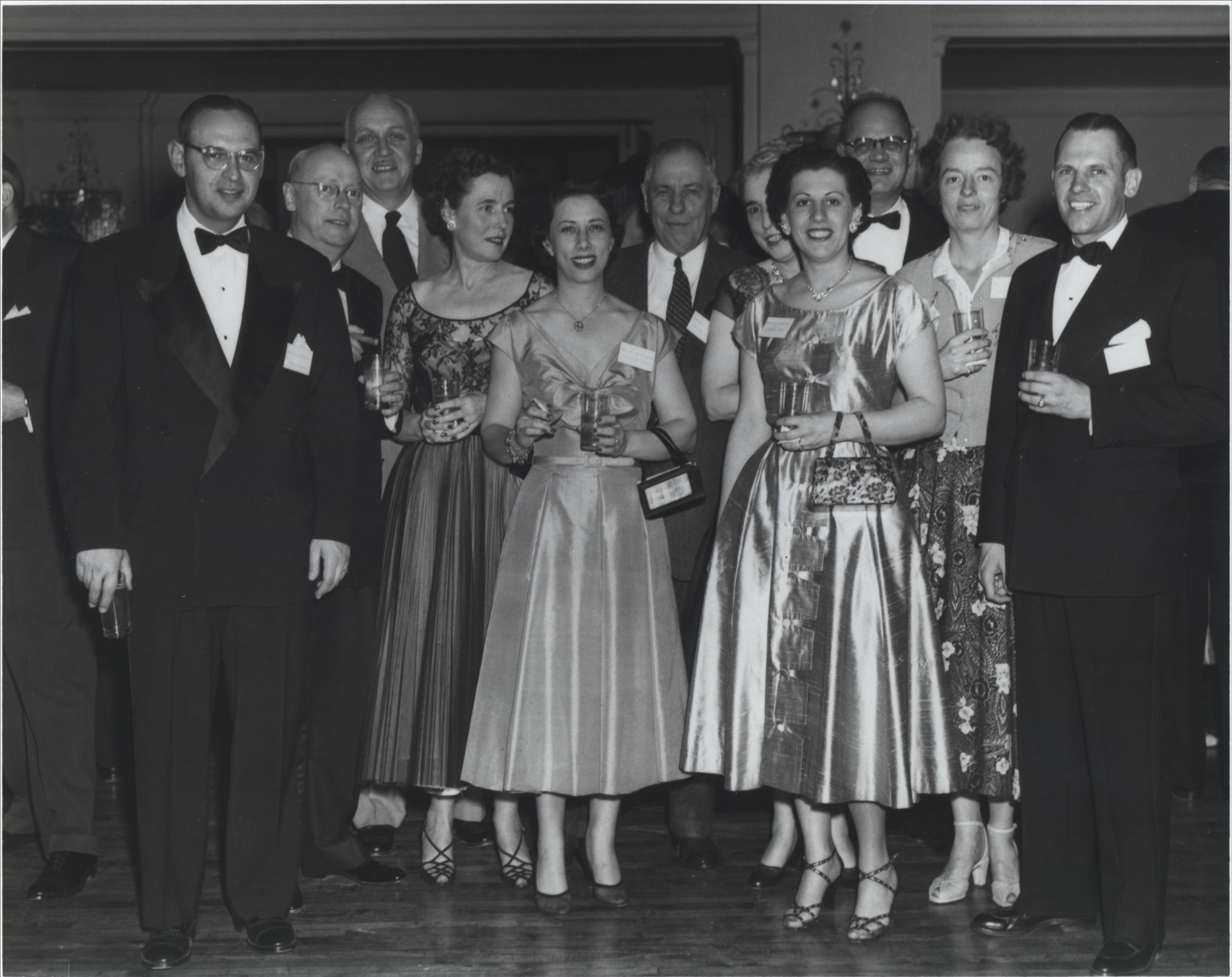 AICPA National Meeting. This was the Michigan delegation. Jerry & Eleanor Schroeder on the right, at the Graenbrier - 1960s (from back of photo)