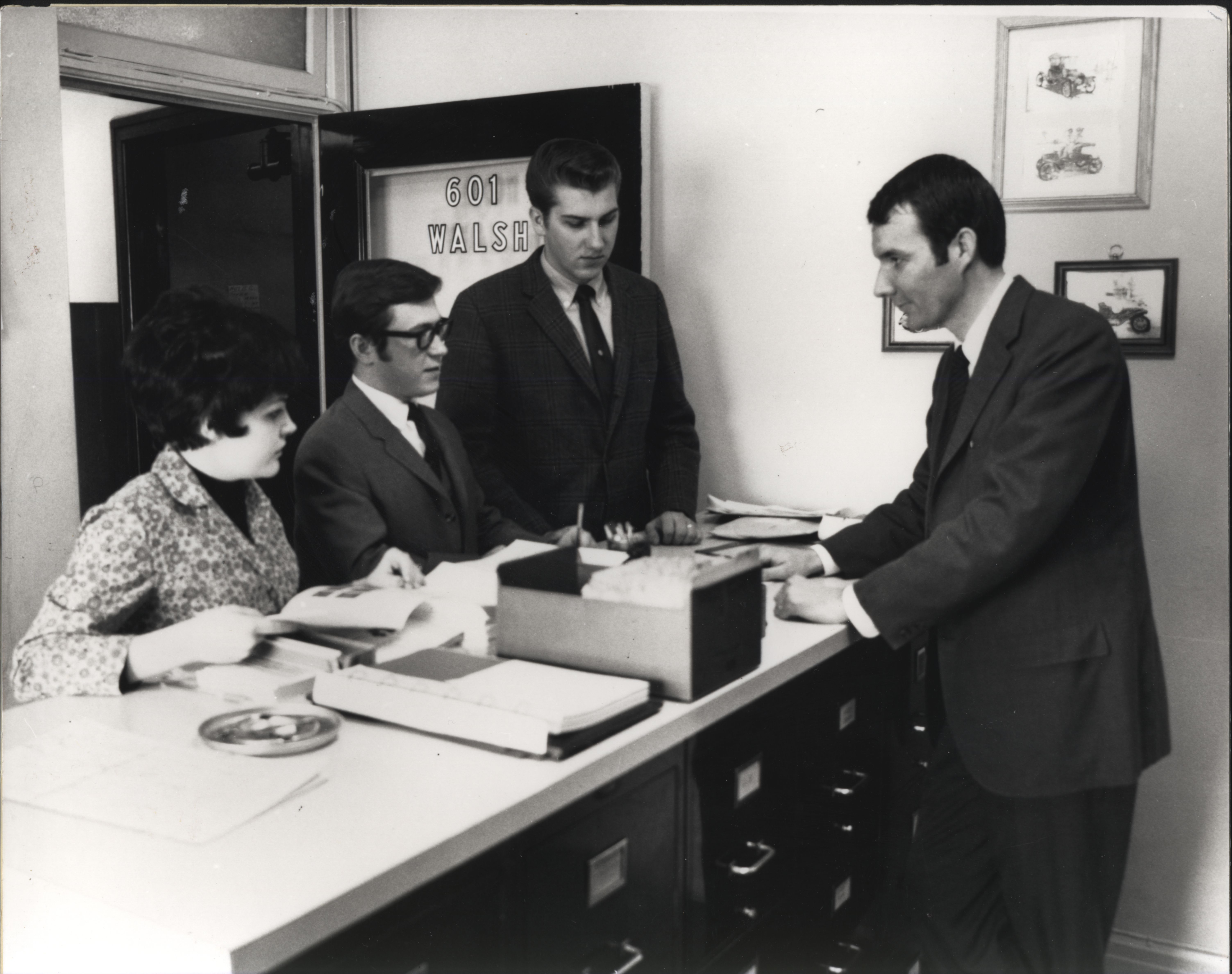 Jeff Barry, V.P. at the time (1969) in the Main Office of Walsh College in the Capitol Theatre Bldg. on Madison in Detroit. (from back of photo)