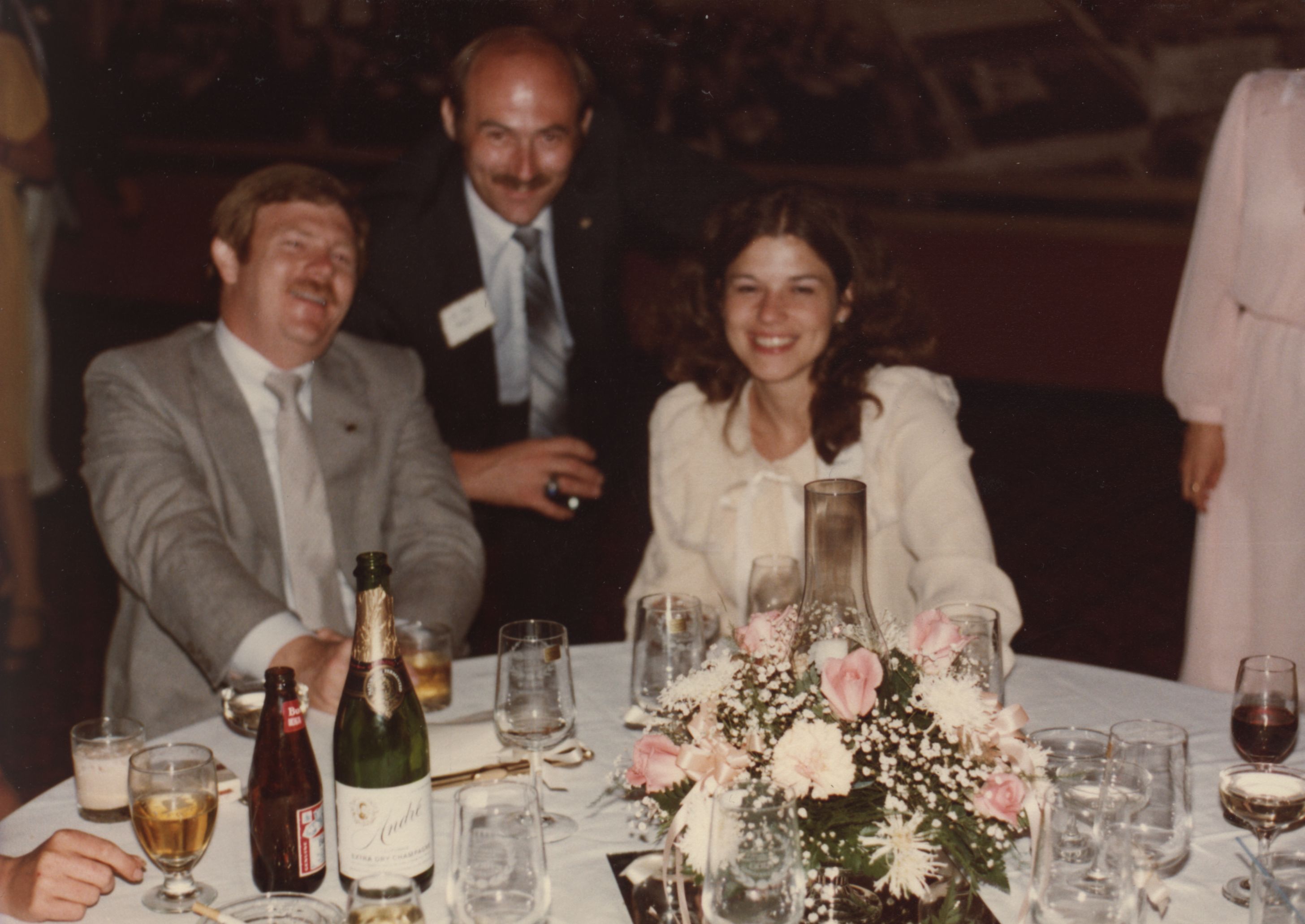 Dave Spencer (4th President) and two other people at a table at an event for the 60th Anniversary of Walsh.