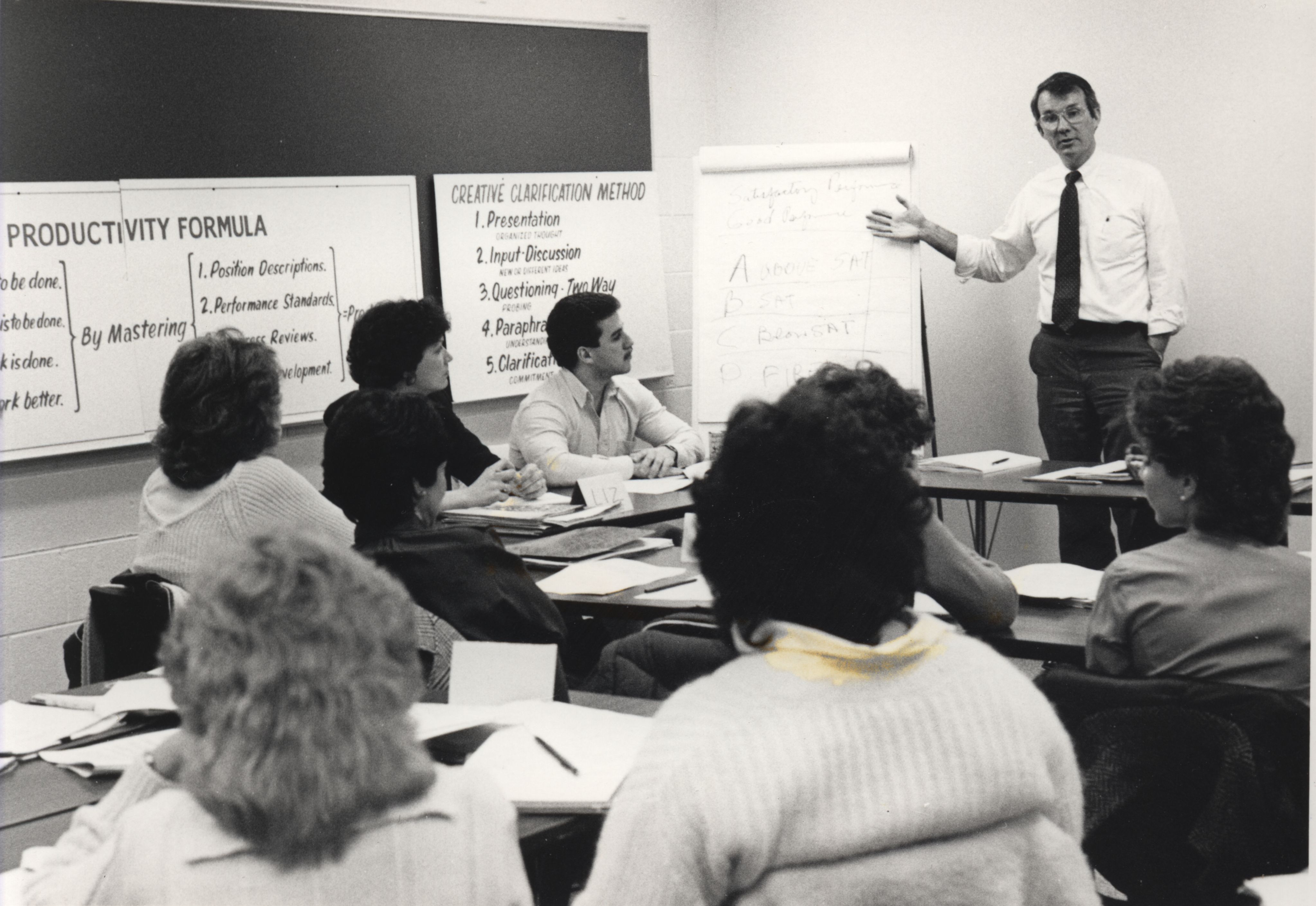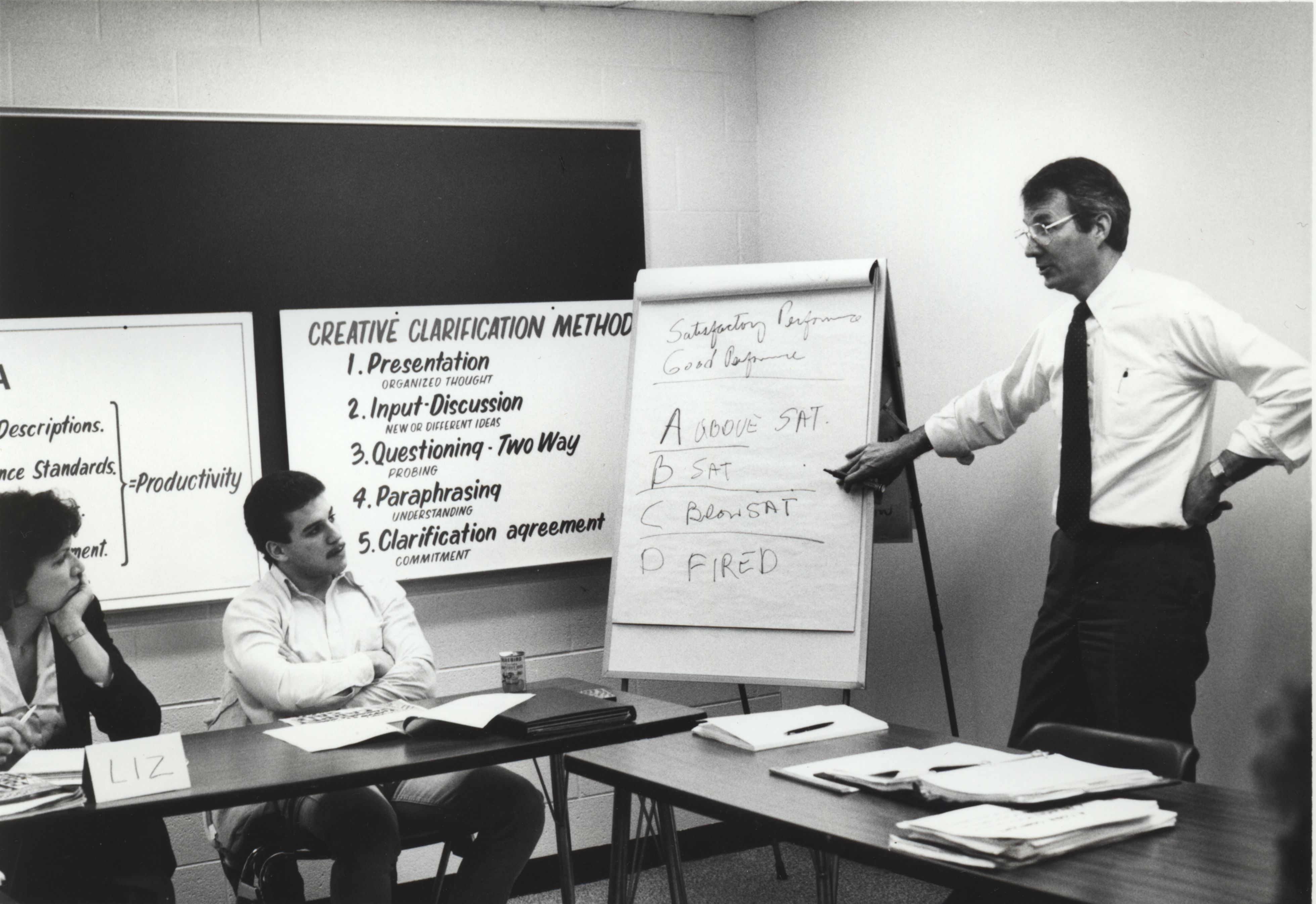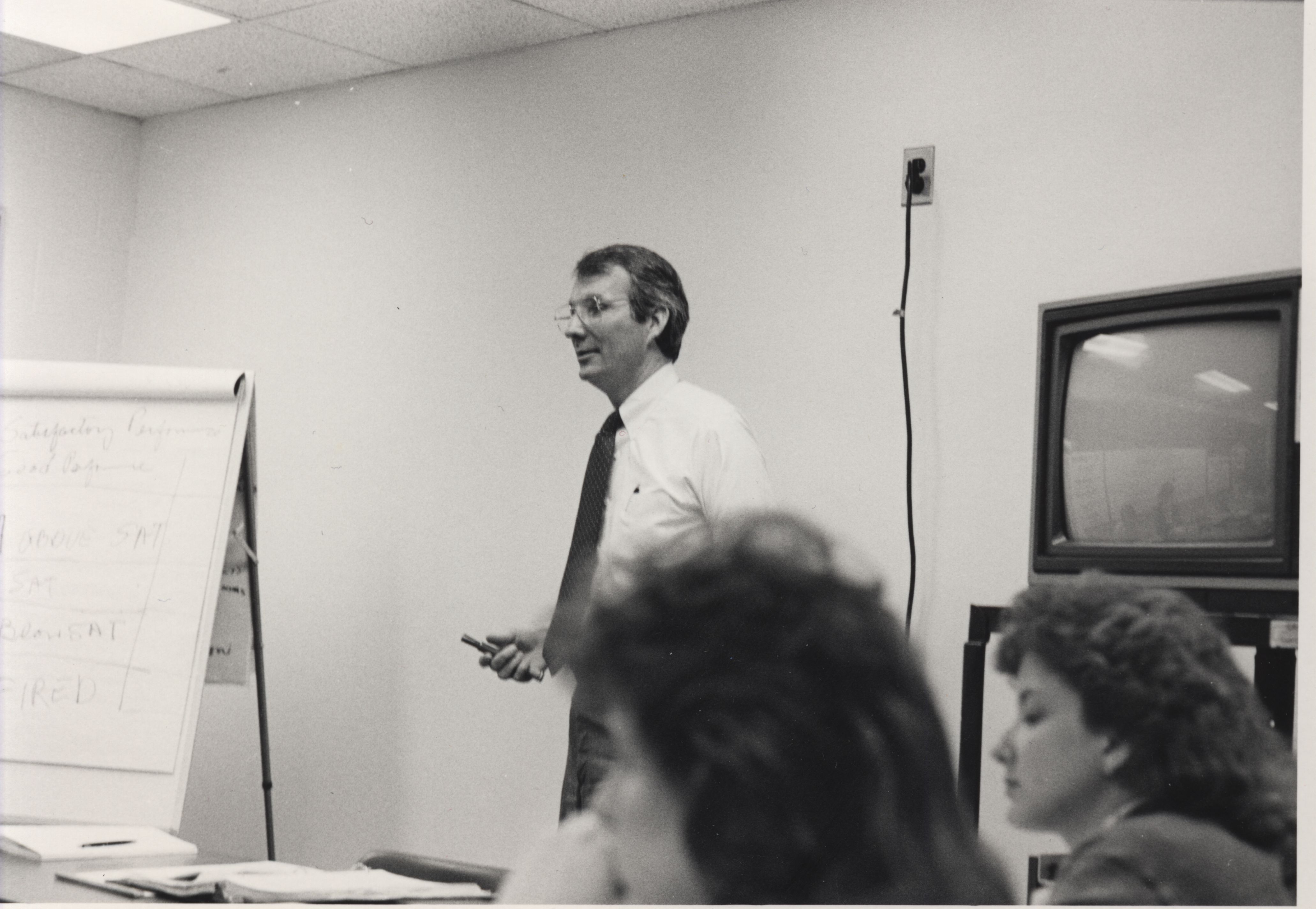Jeff Barry (3rd President) teaching a group of students in 1986.