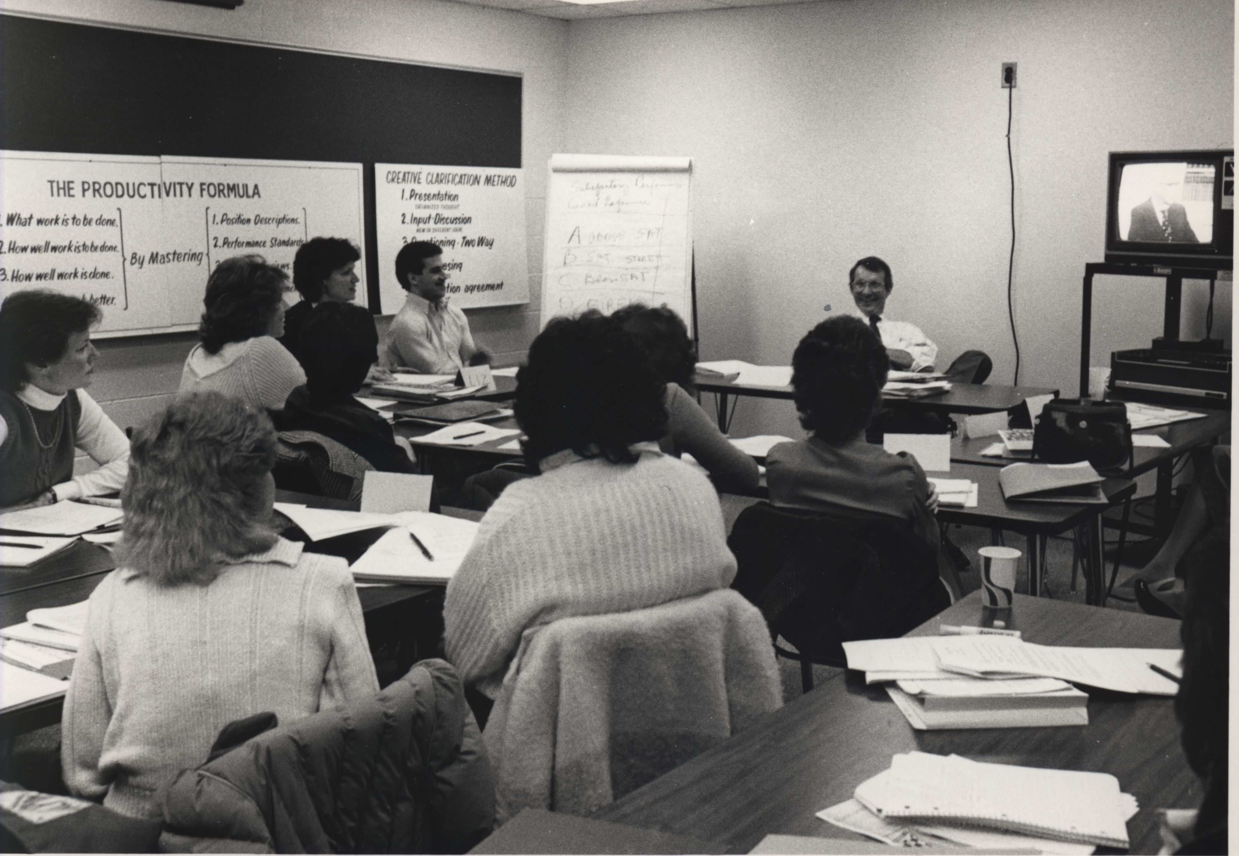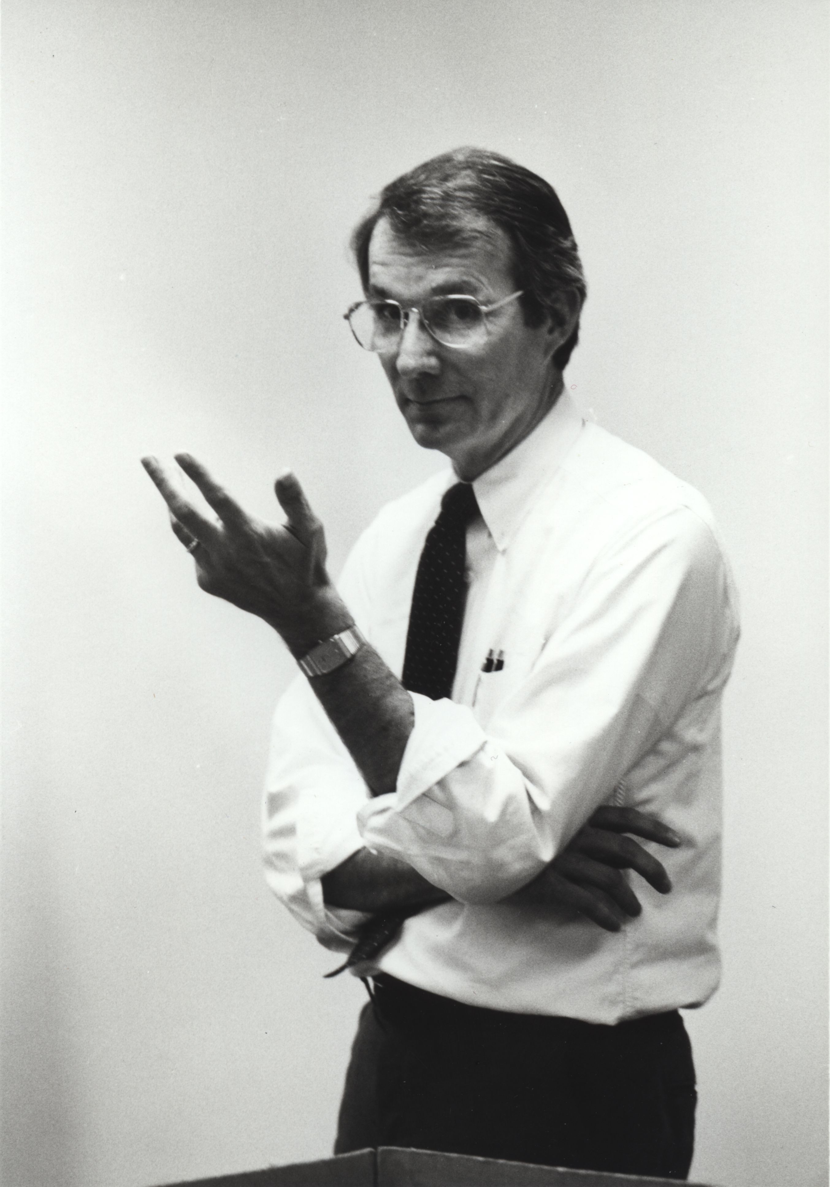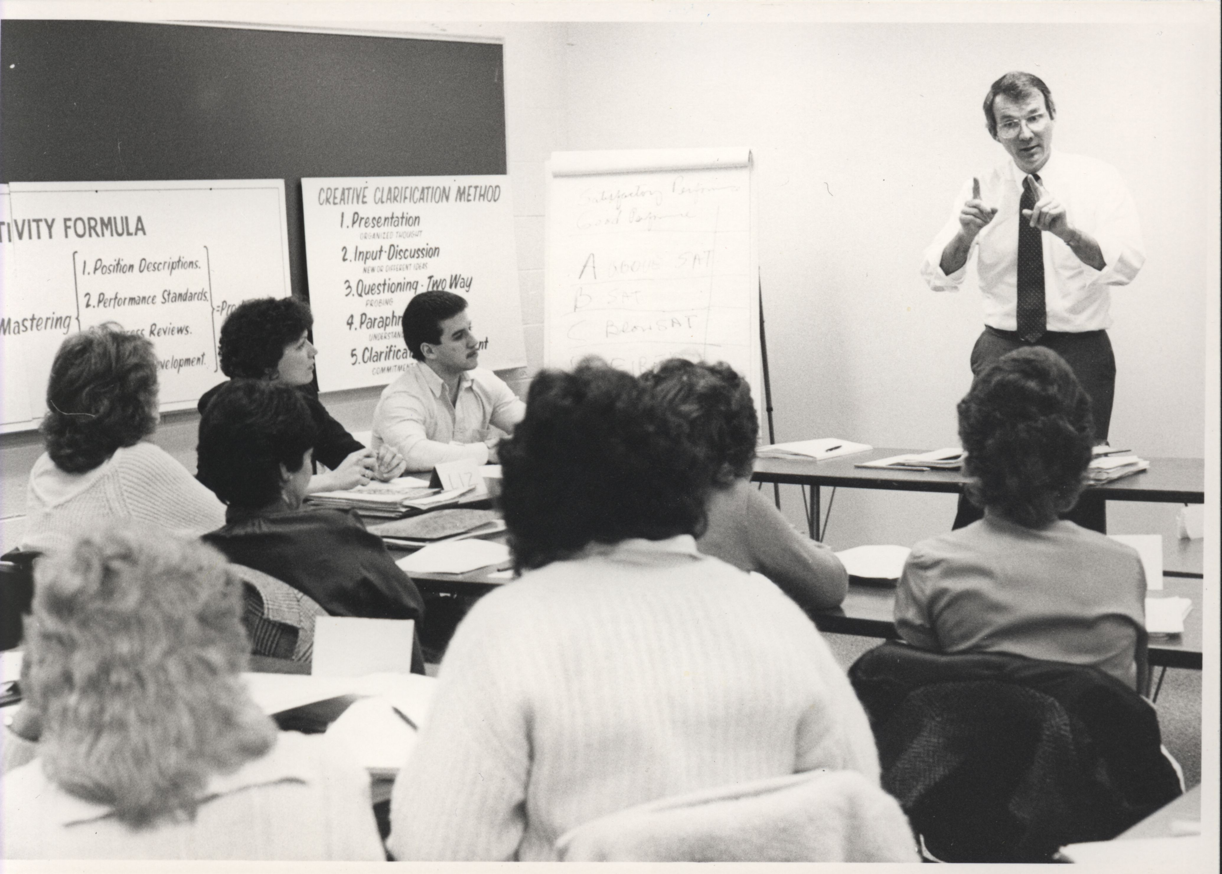 Jeff Barry (3rd President) teaching a group of students in 1986.