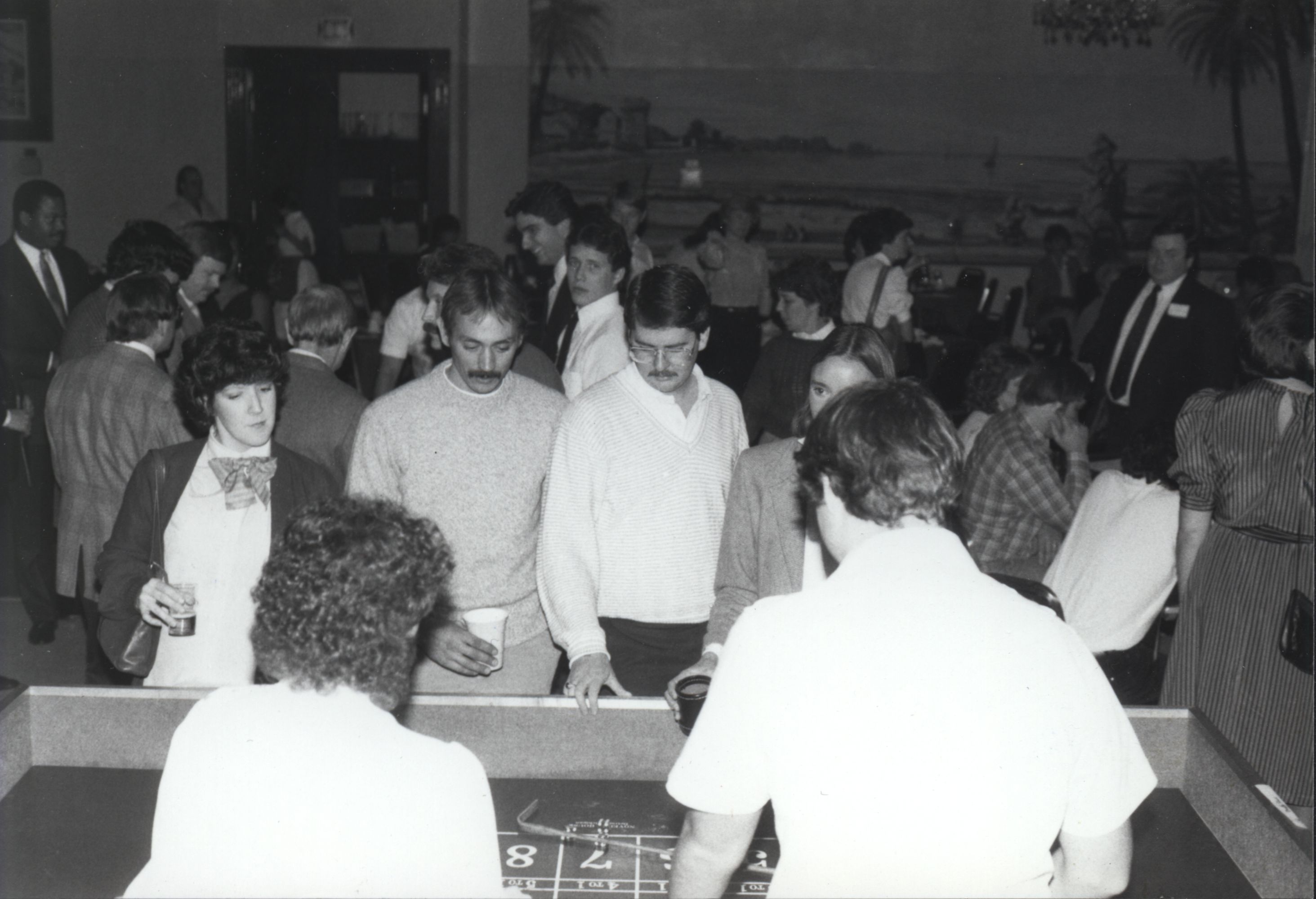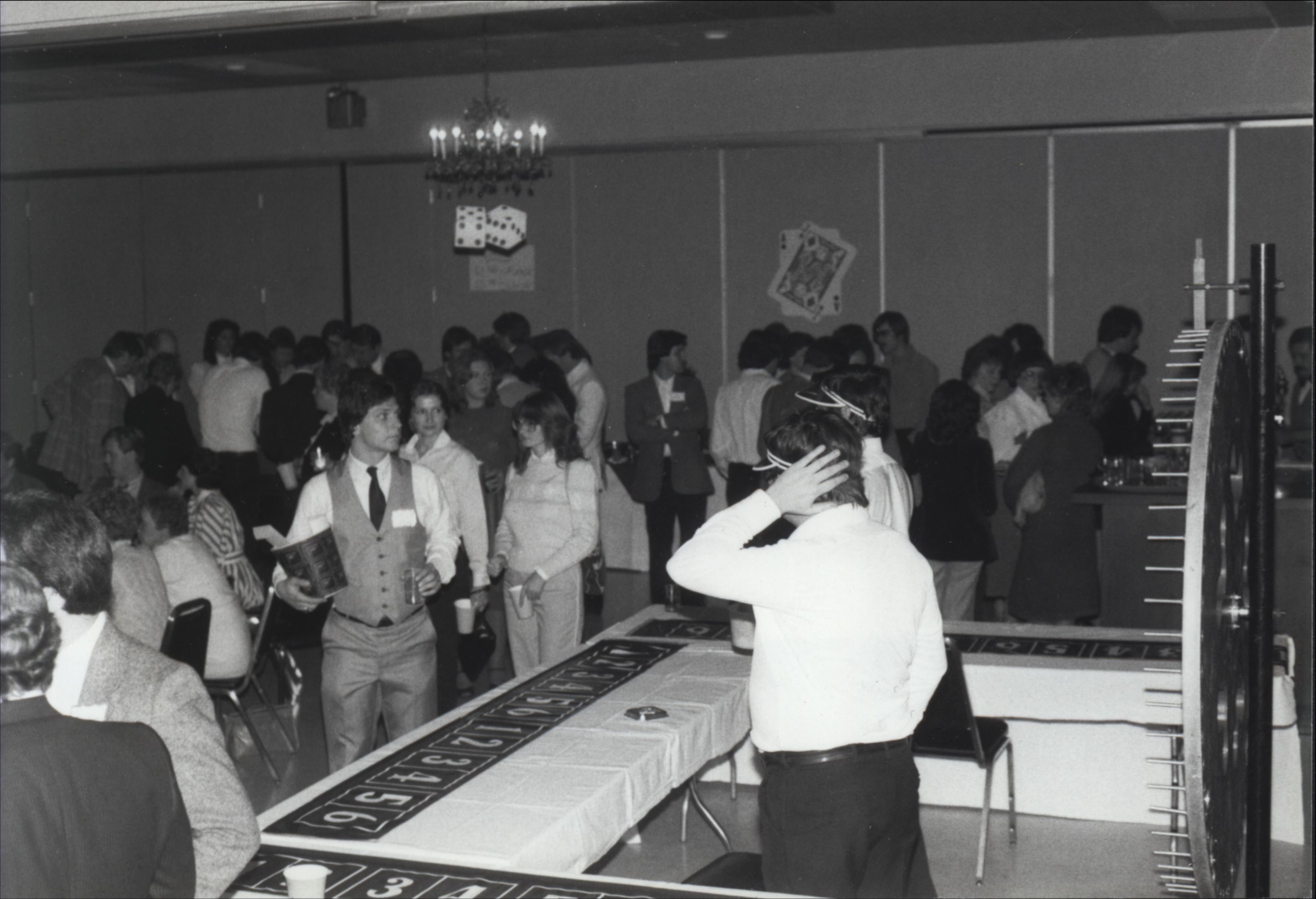The Alumni Assoc. first Las Vegas night at the Northfield Hilton (from back of photo, pg. 254 in Walsh history book)