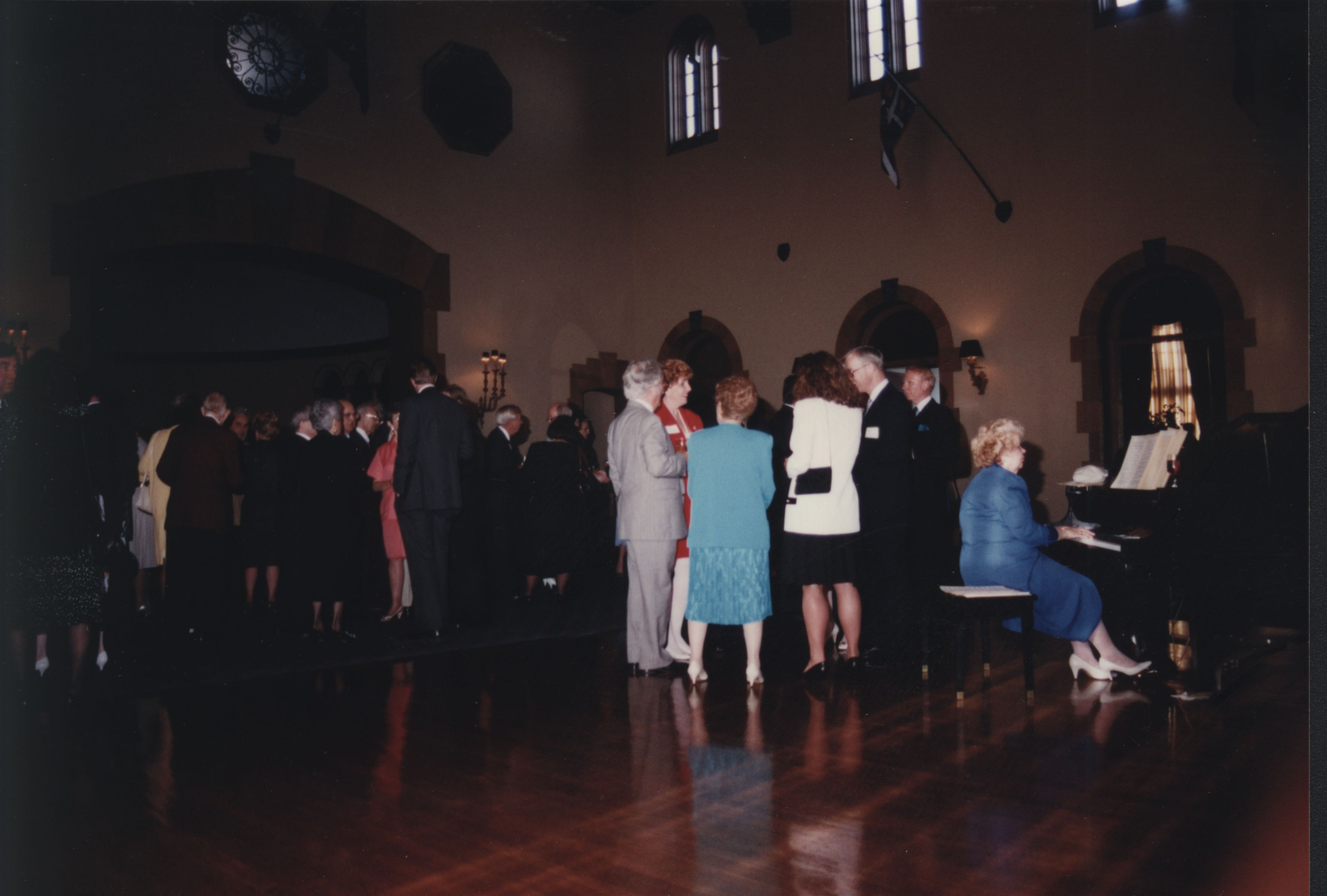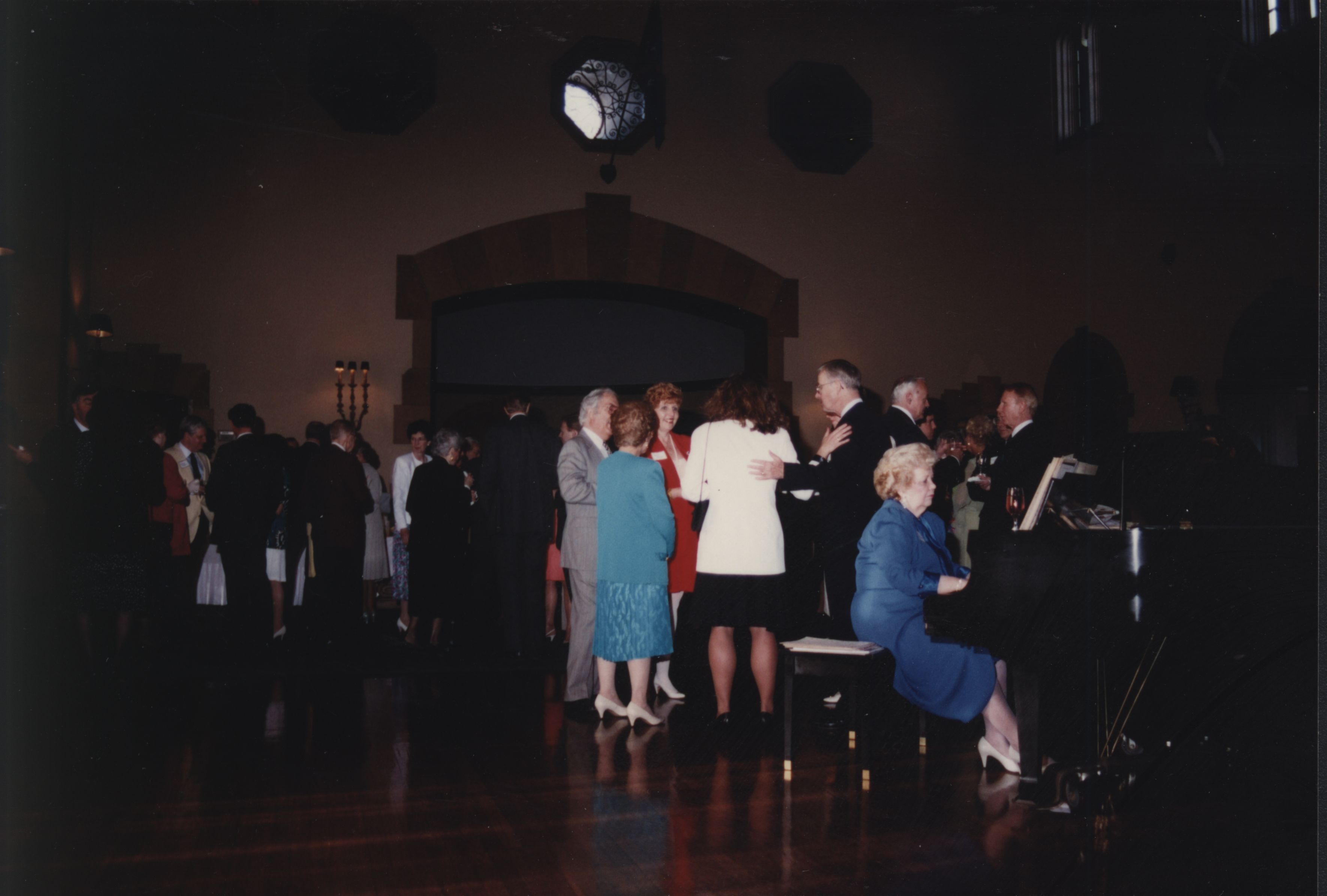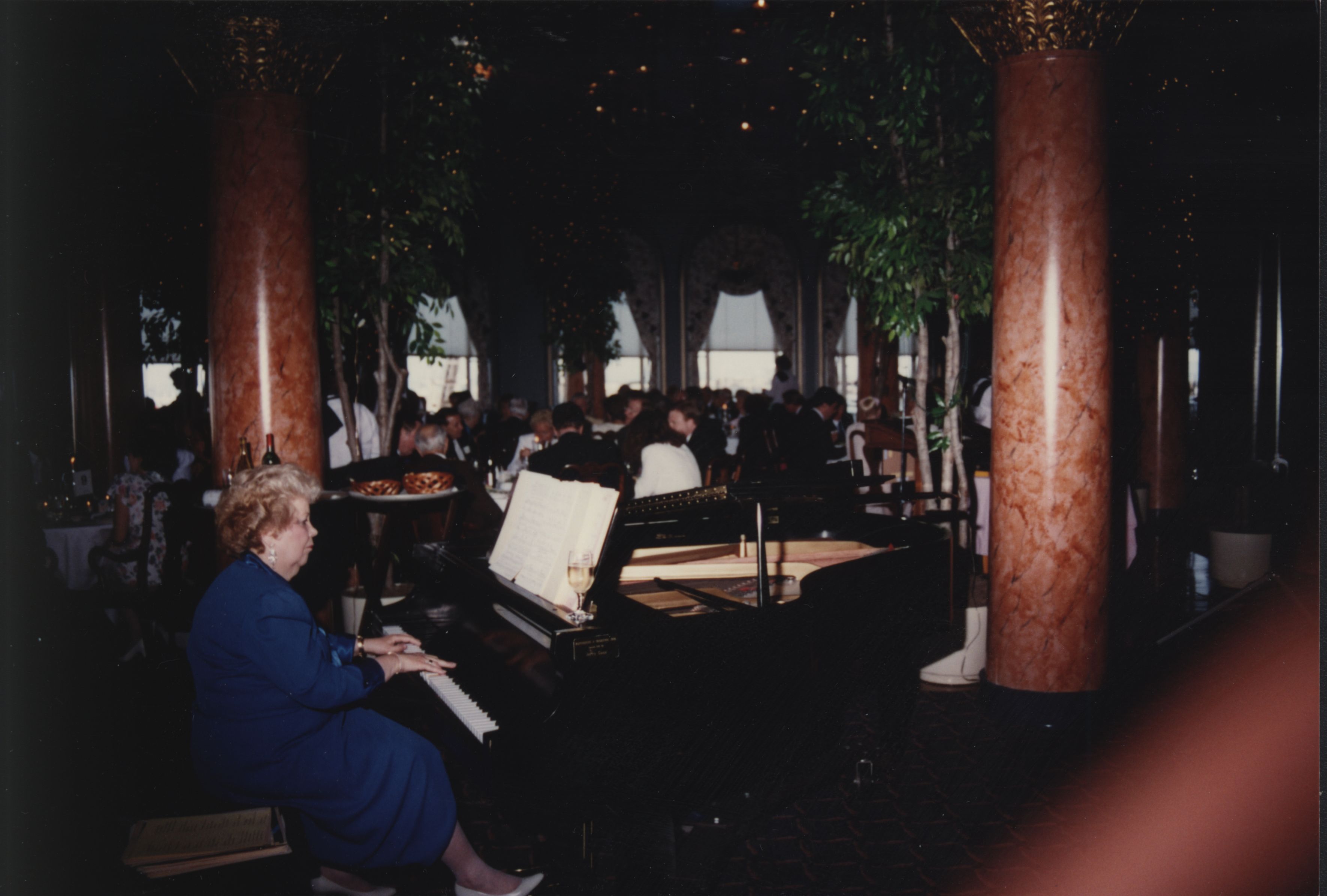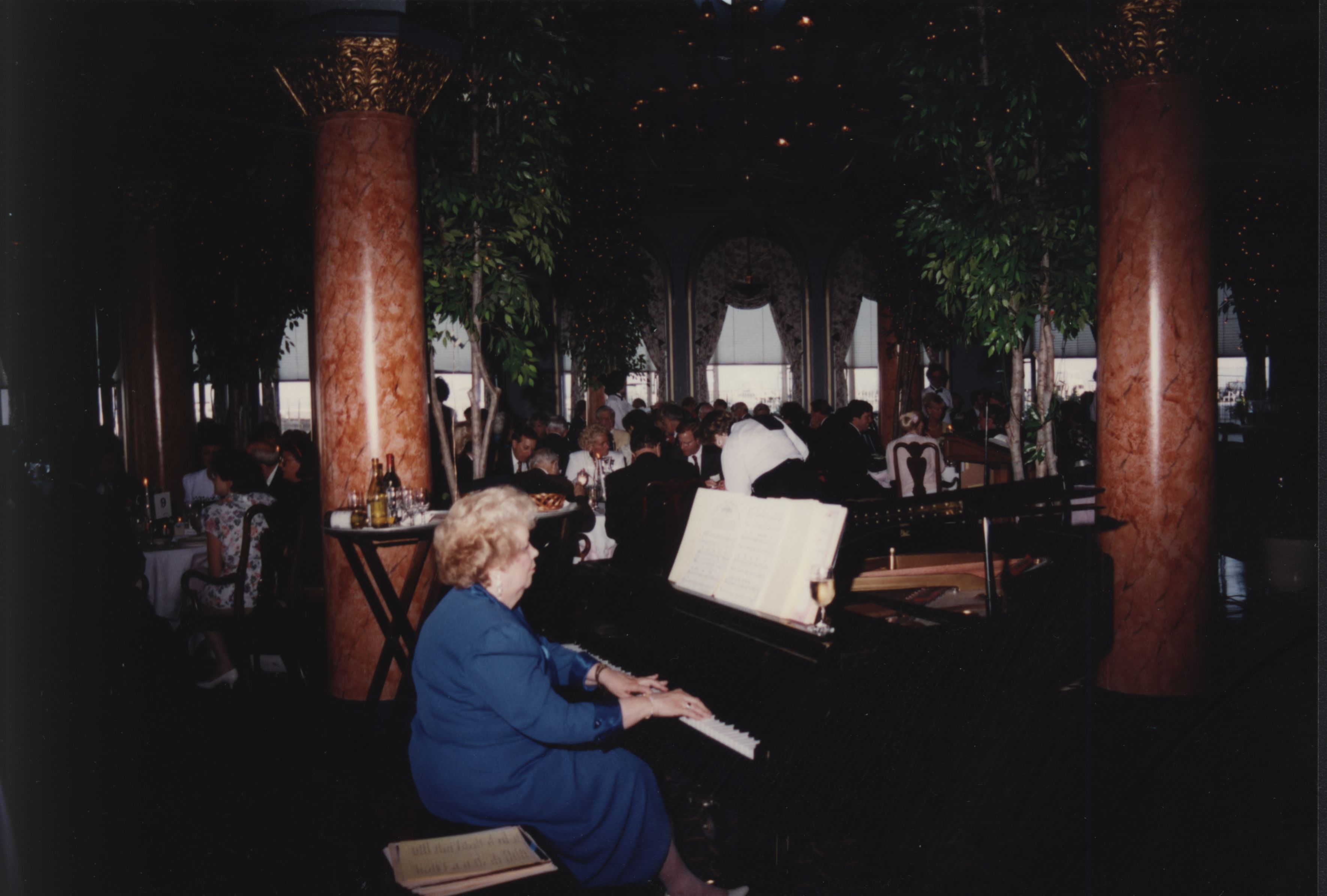 A woman plays the piano at the 1992 President's Club Dinner.