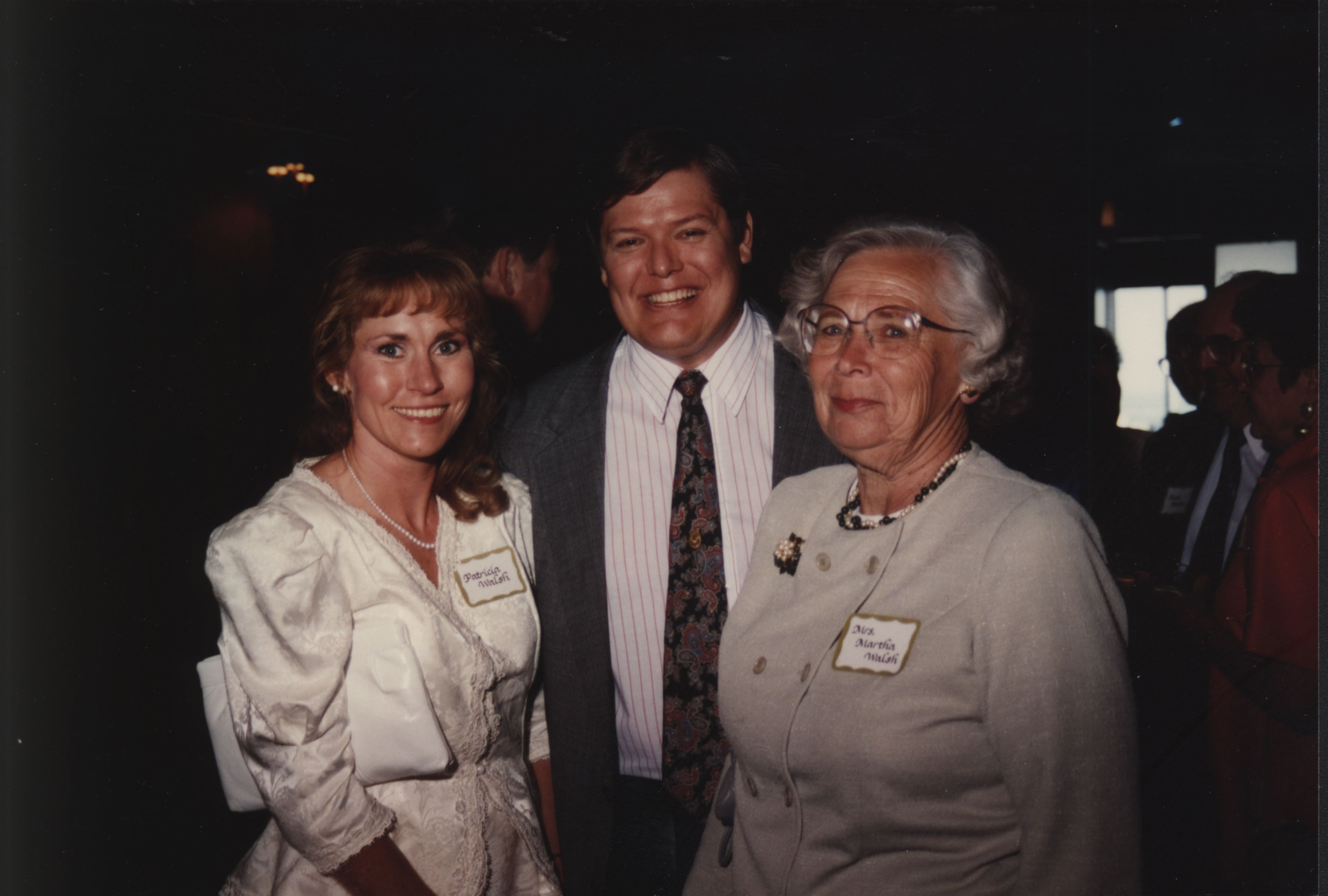 Martha Walsh, Patricia Walsh, and a man at the 1992 President's Club Dinner.