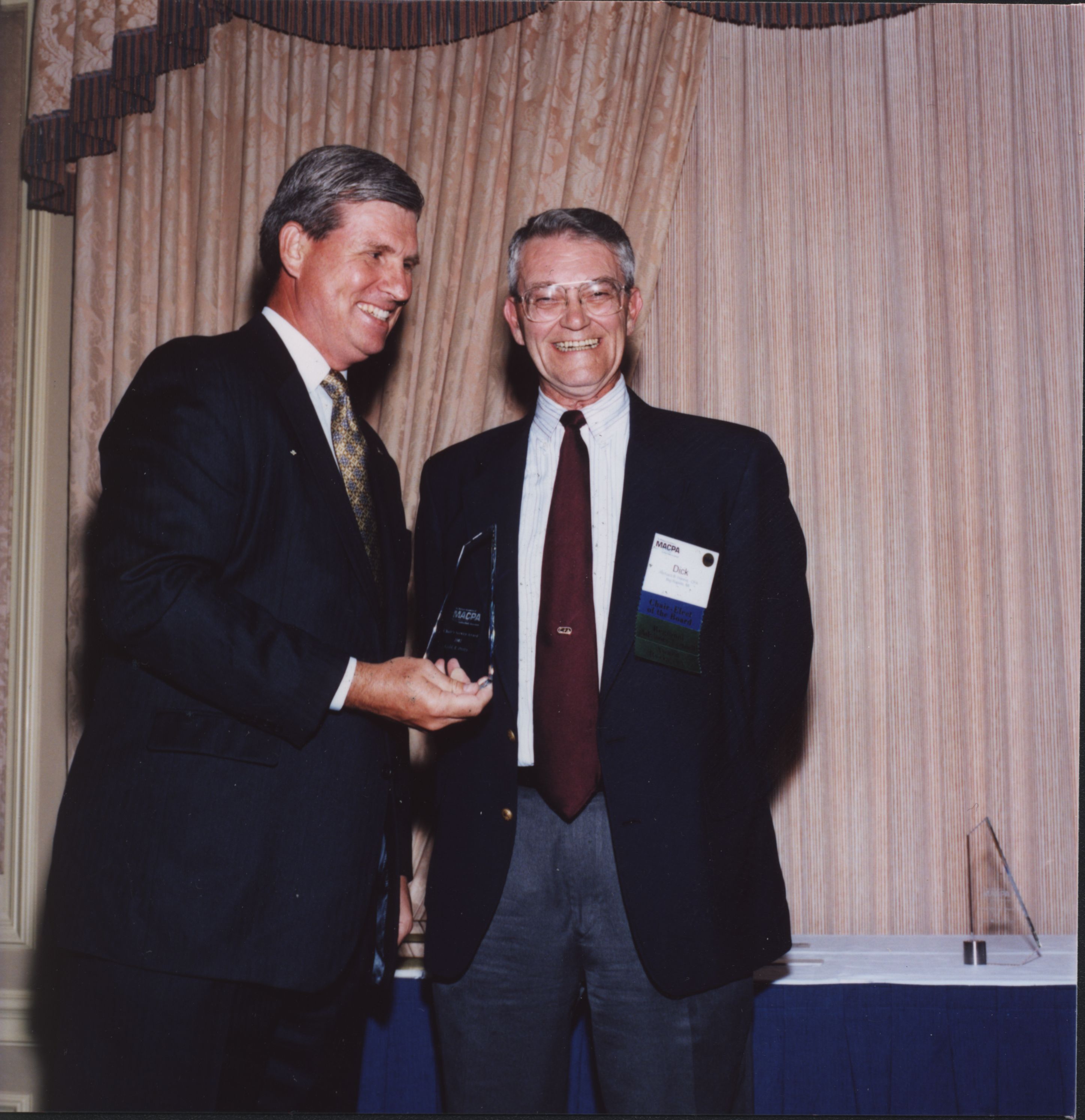 Keith Pretty (5th President) and Dick Hanna (Pres. MACPA) at an event to present Keith Pretty with an award.