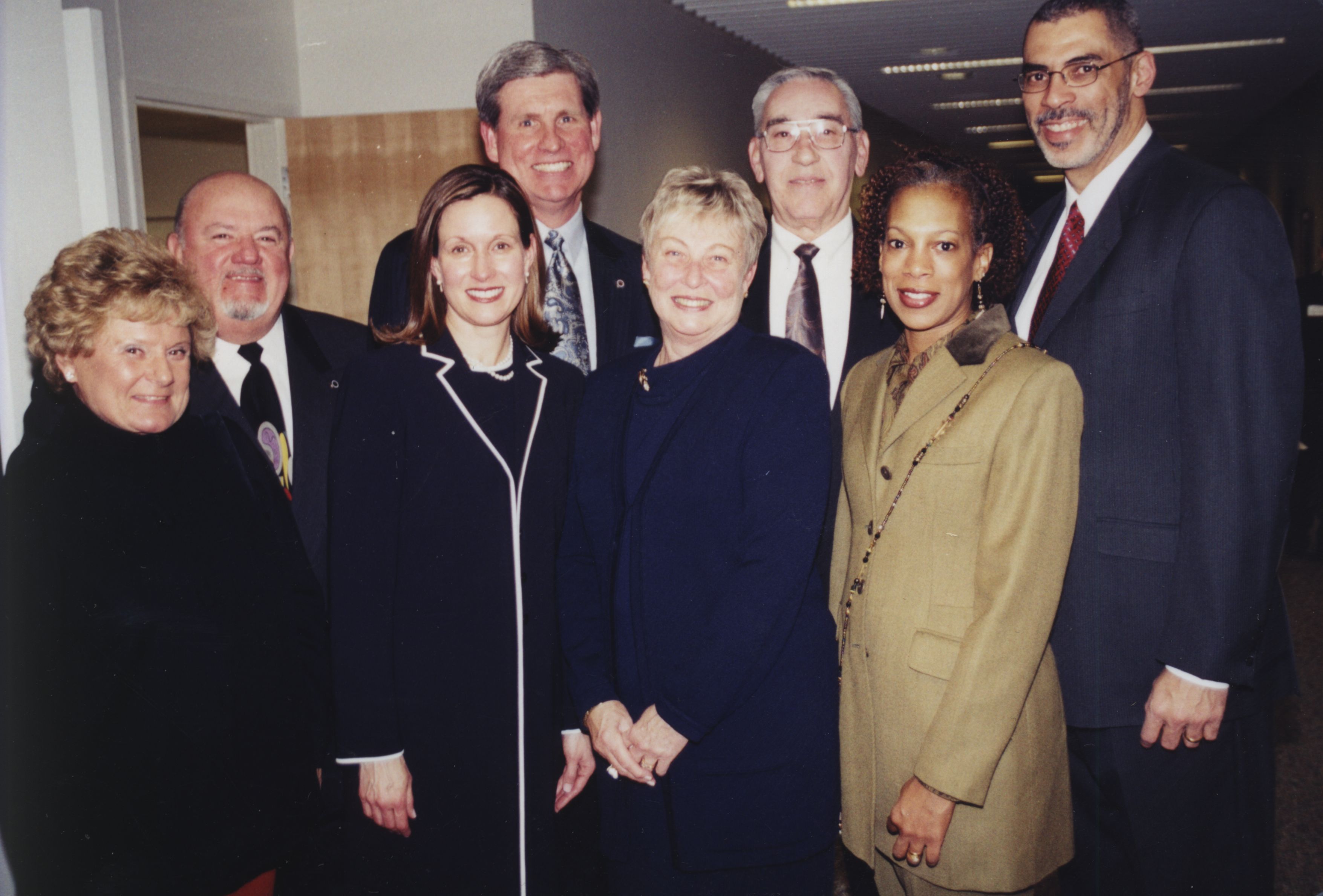 Keith Pretty (5th President) and a group of people in a hallway. Date unknown.
