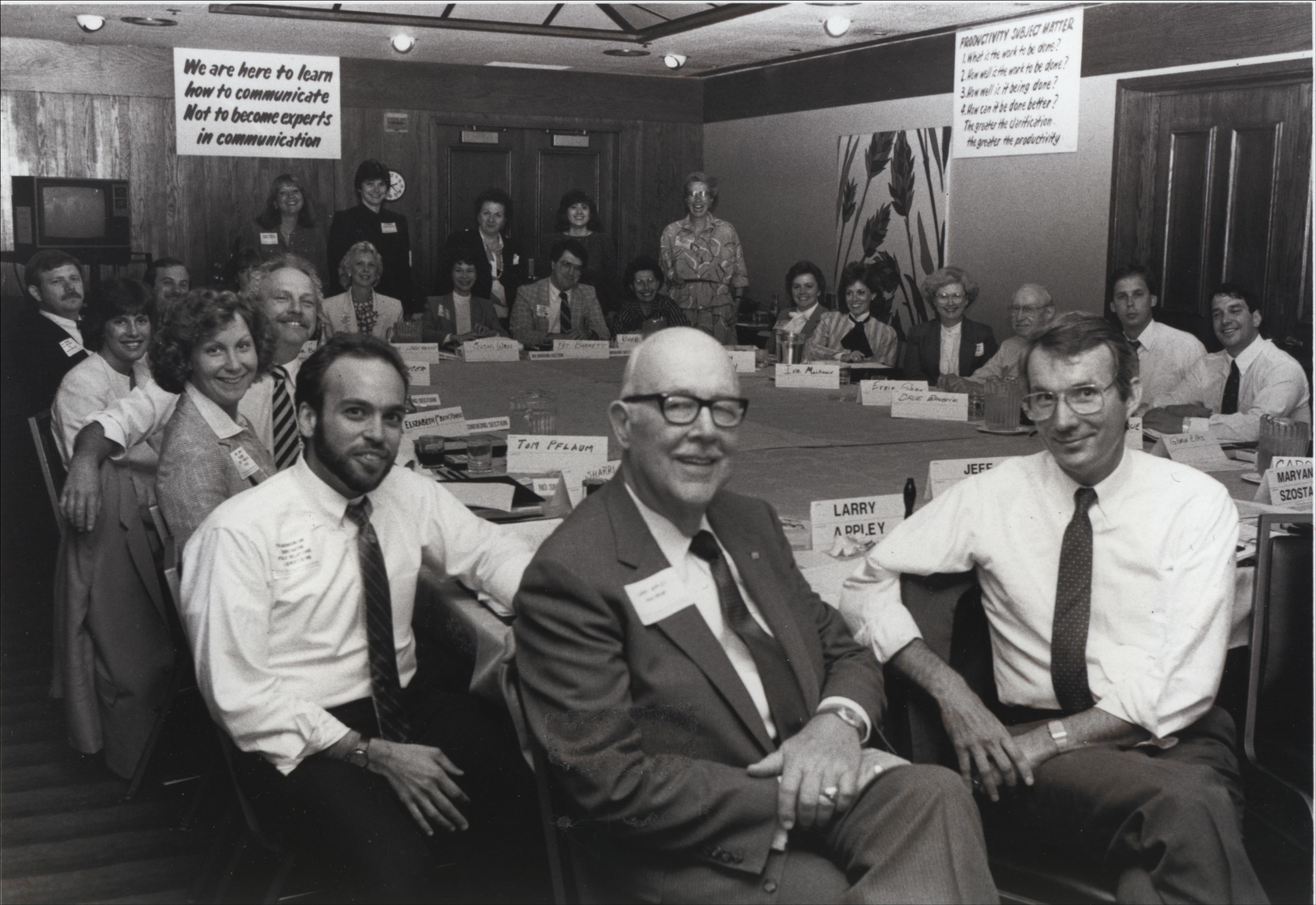 Jeff Barry (3rd President) and students at a Communicate Seminar. Date unknown.