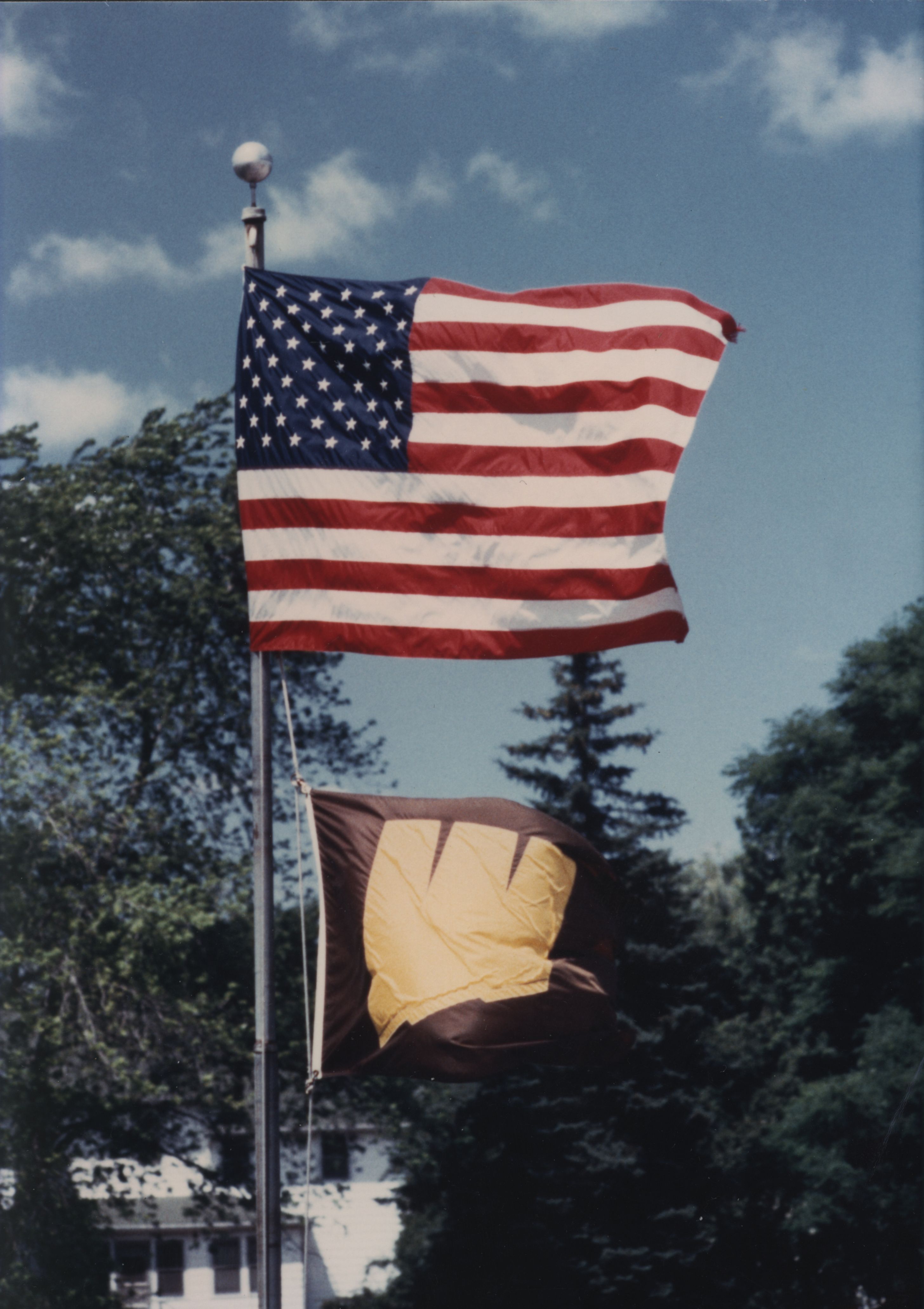 A picture of the American and Walsh flags on a windy day. (date unknown)