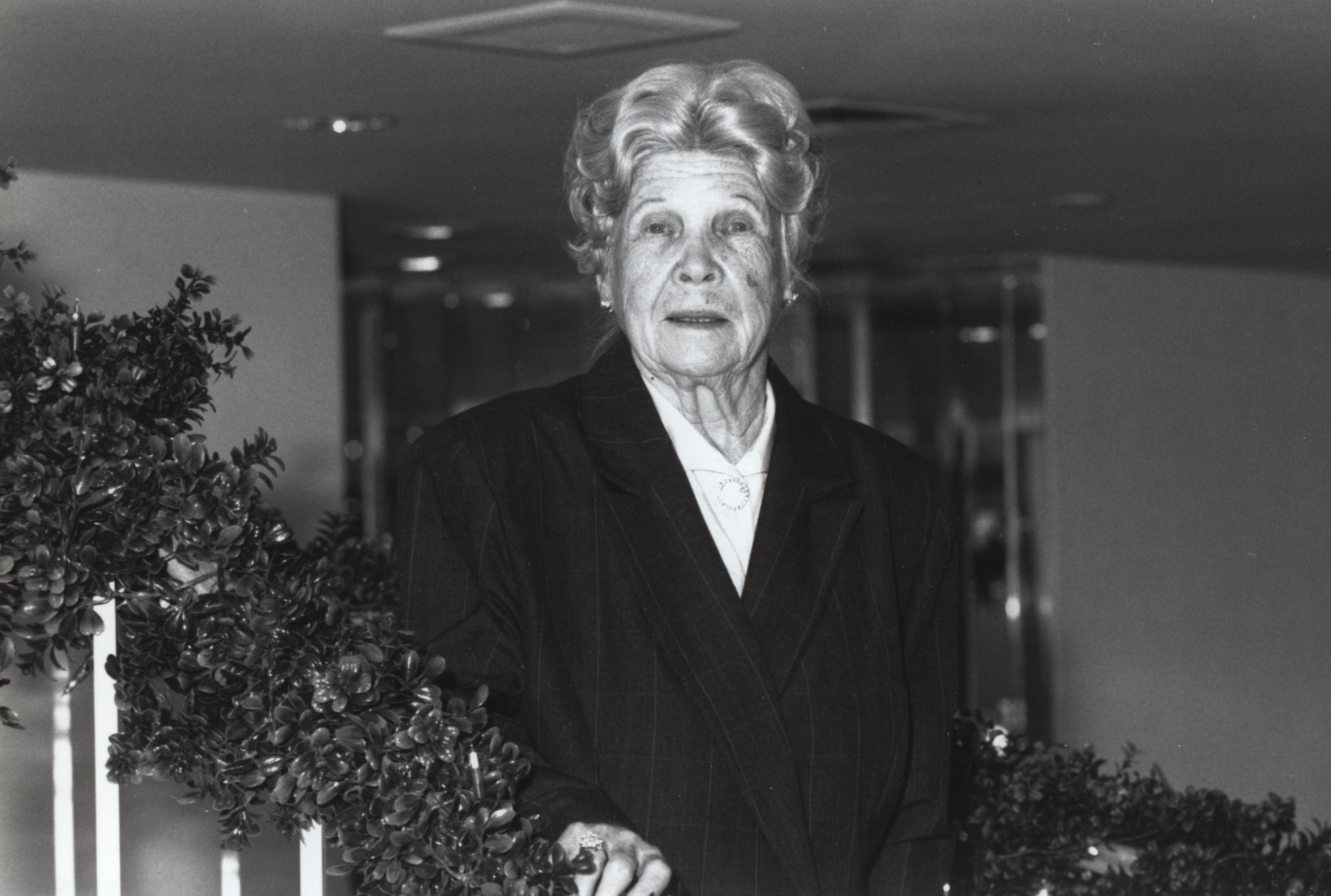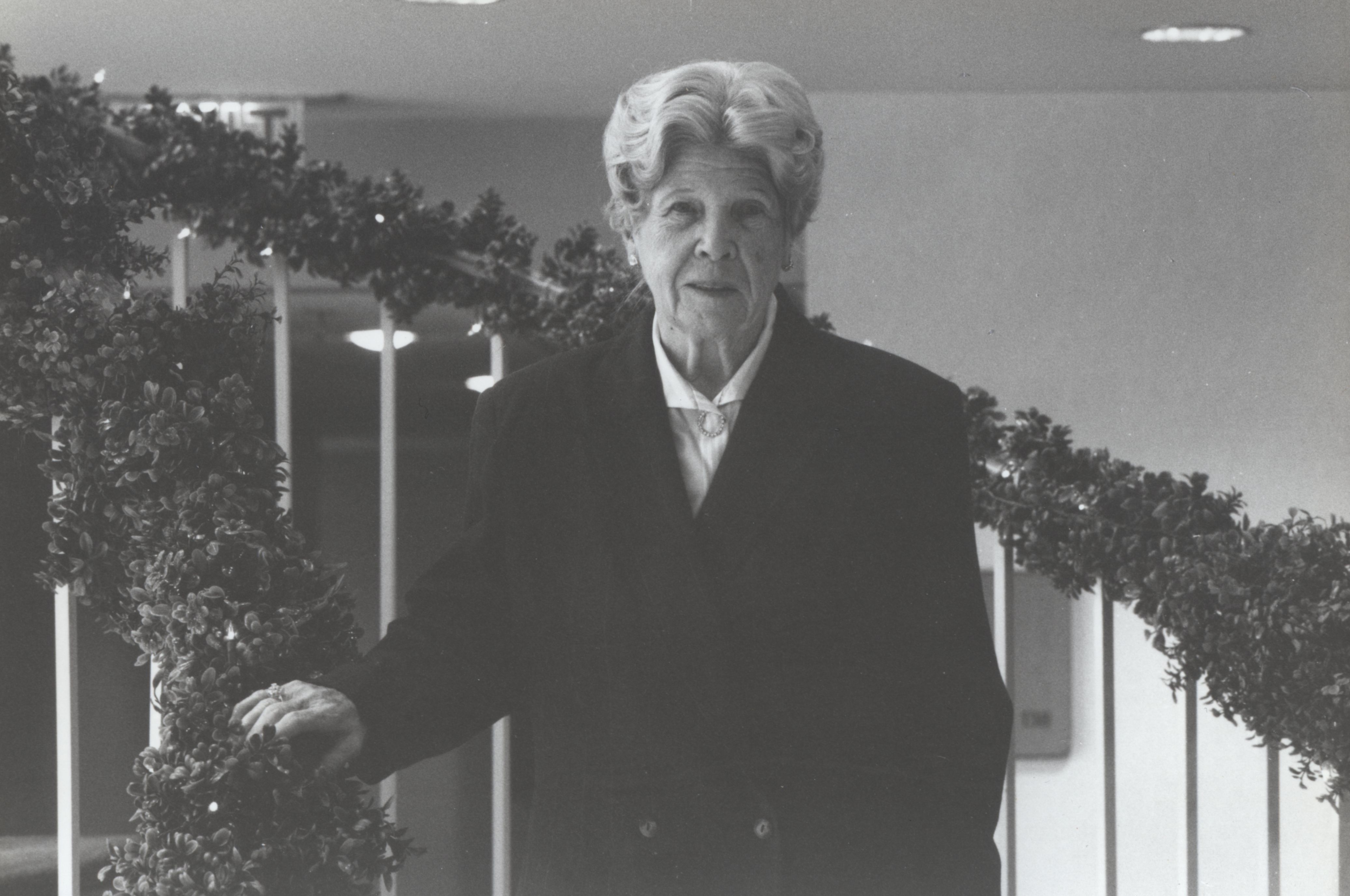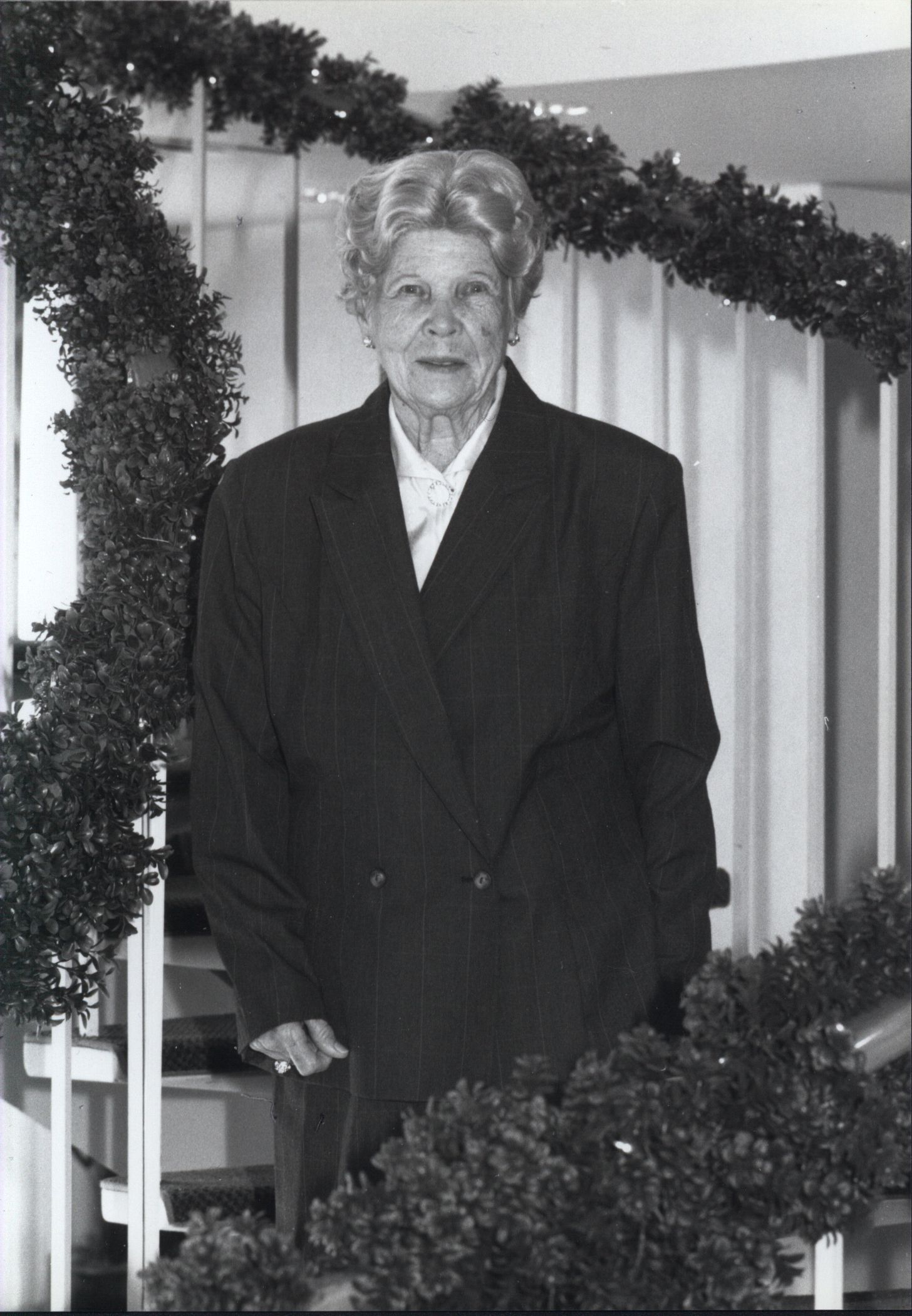 Elsie Walsh poses on a staircase (date unknown)