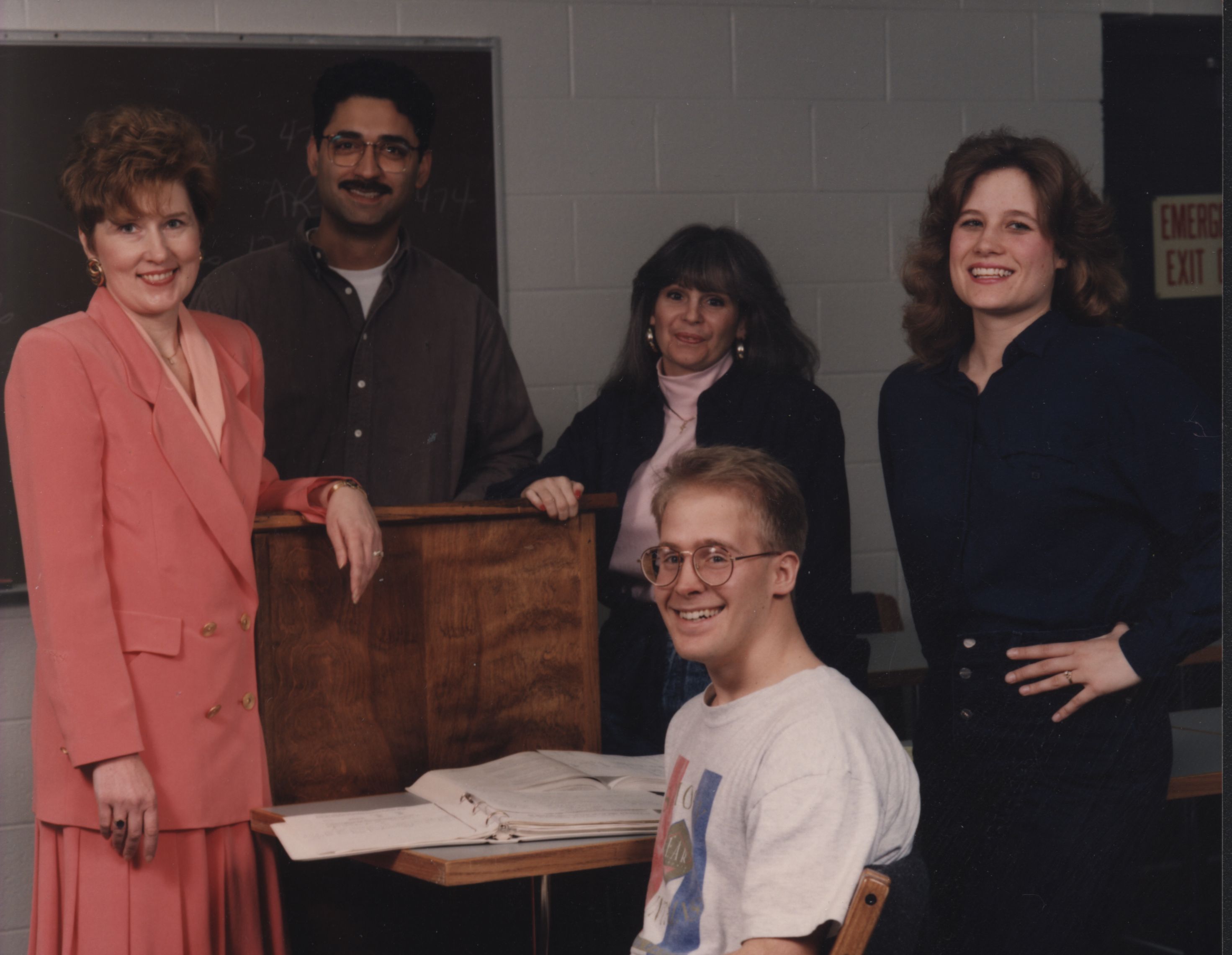 Christine M. Lewandowski, Accounting Professor, 1979-present, with students in the 1990s. (from back of photo)