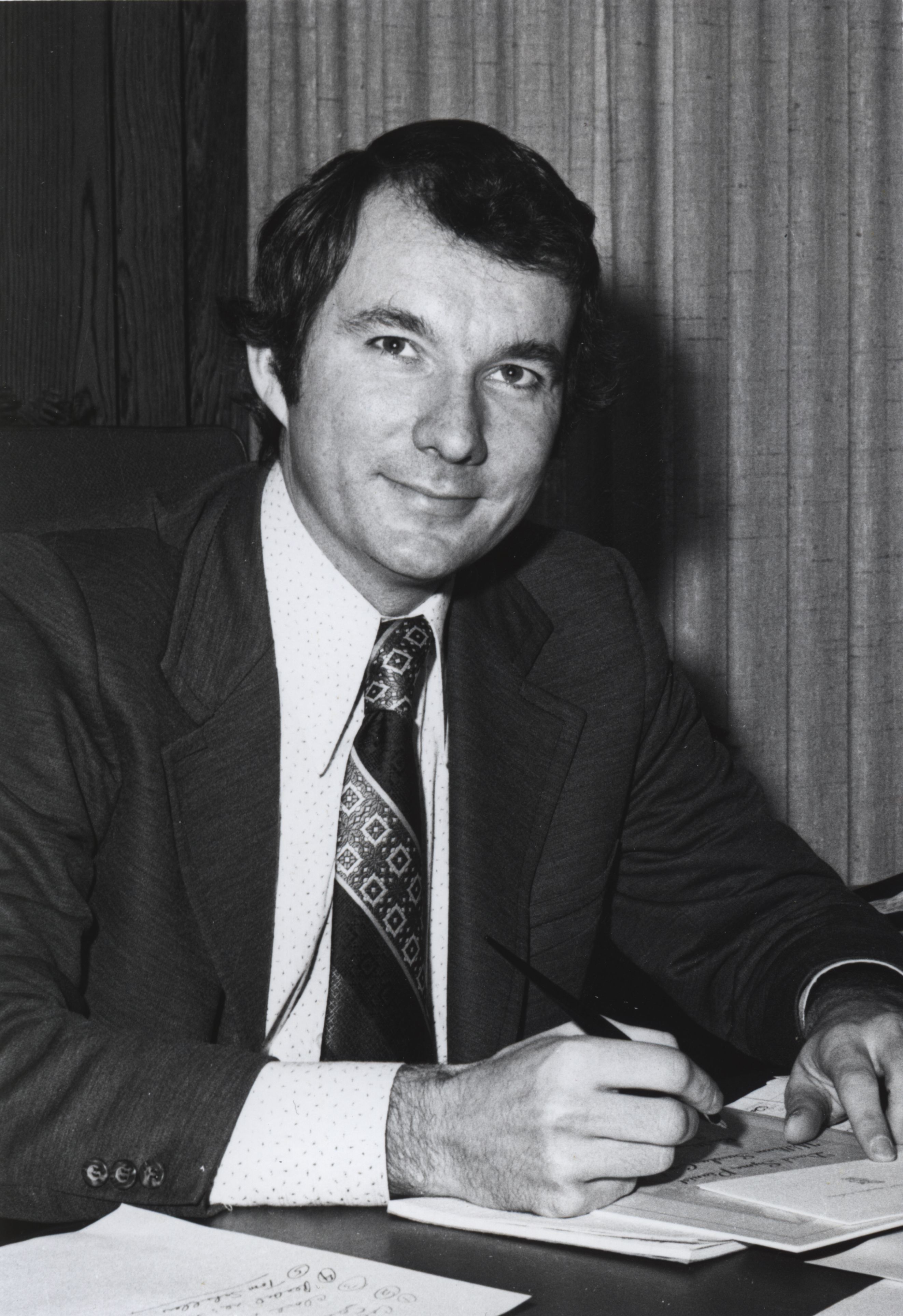 Jeff Barry (3rd President) sitting at his desk. (date unknown)