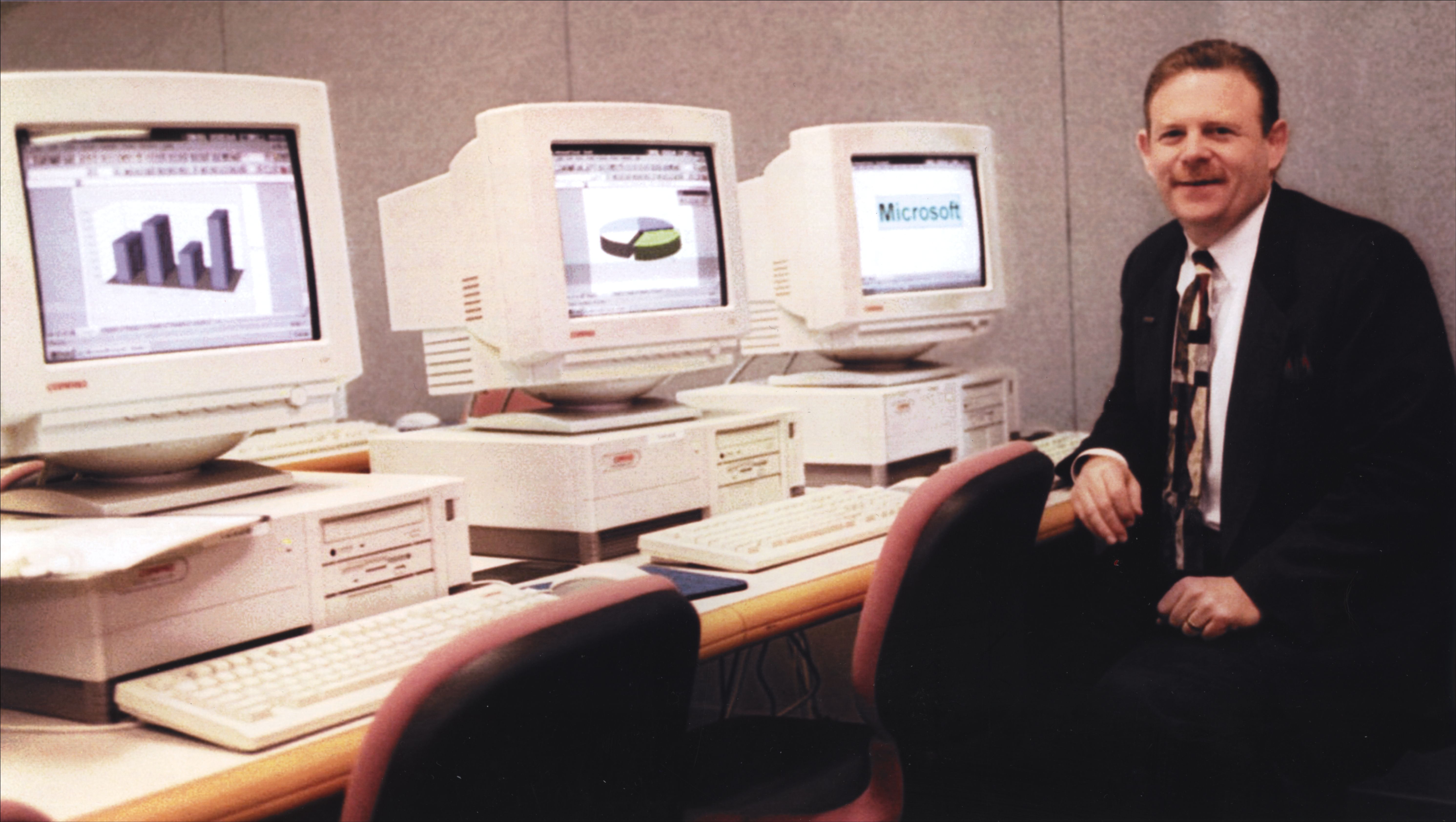 Walsh President David Spencer has positioned the College to be ready for the 21st Century. (from back of photo, pg. 167 in Walsh history book, date unknown)