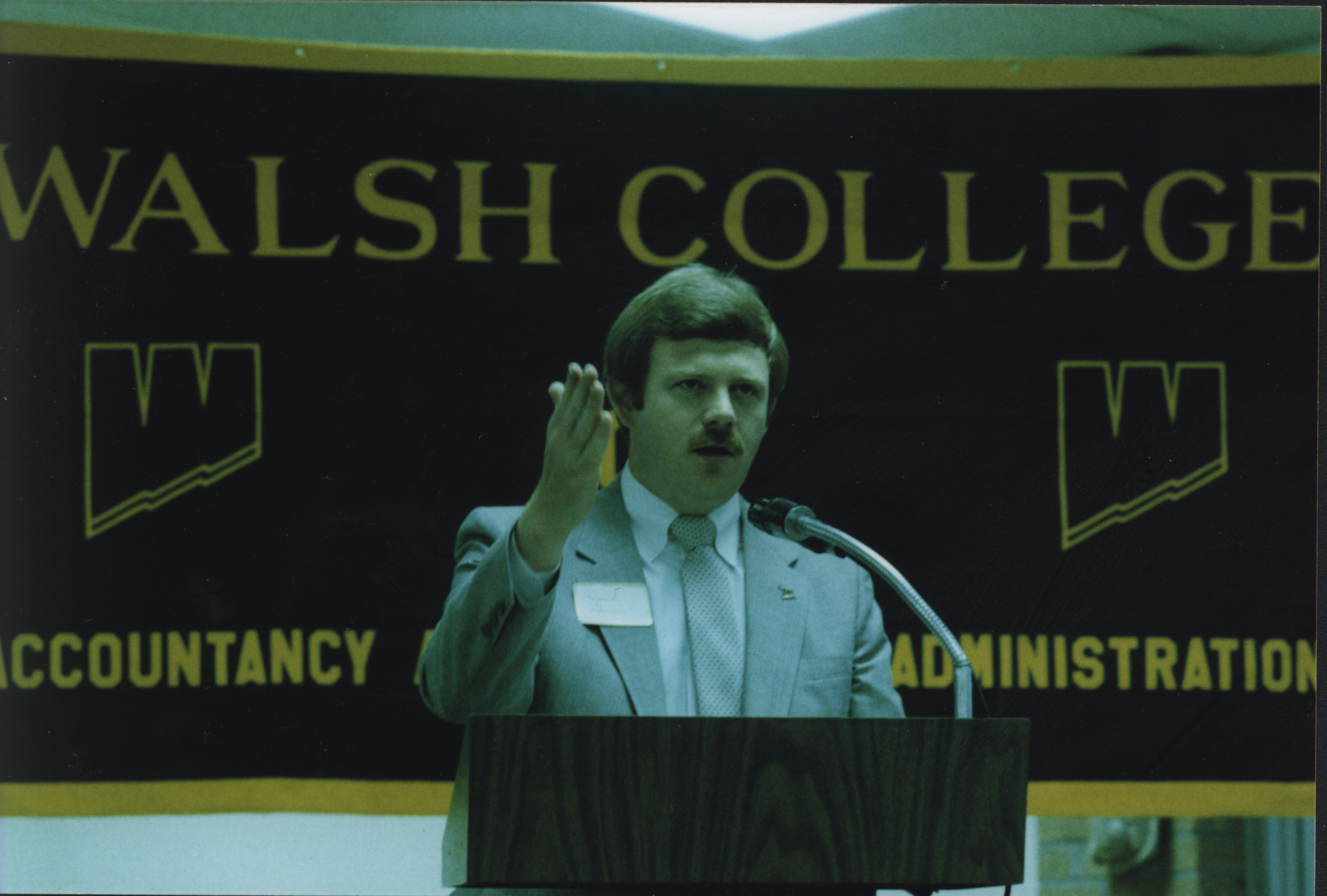 Dave Spencer (4th President) speaks at a podium. (dates unknown)