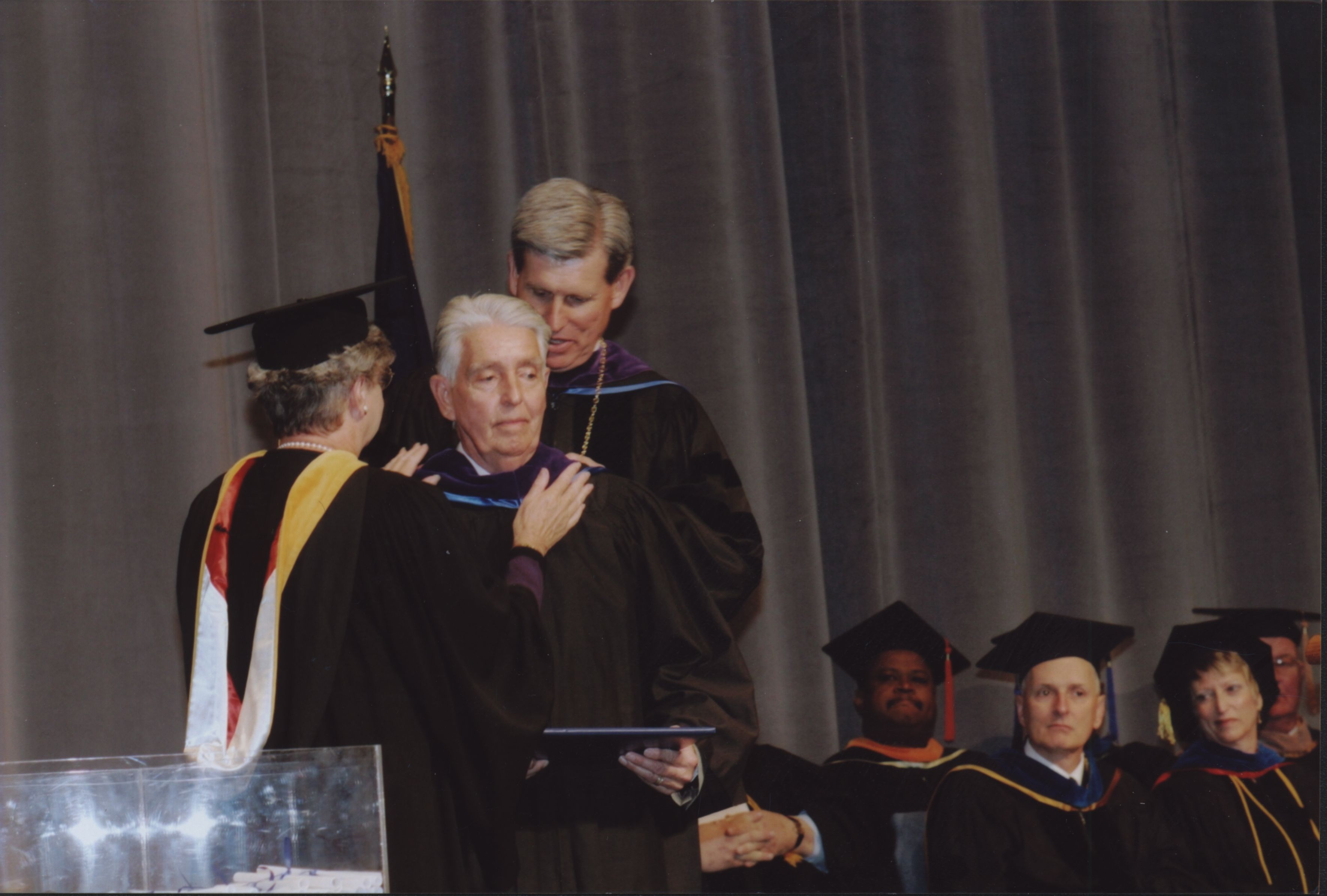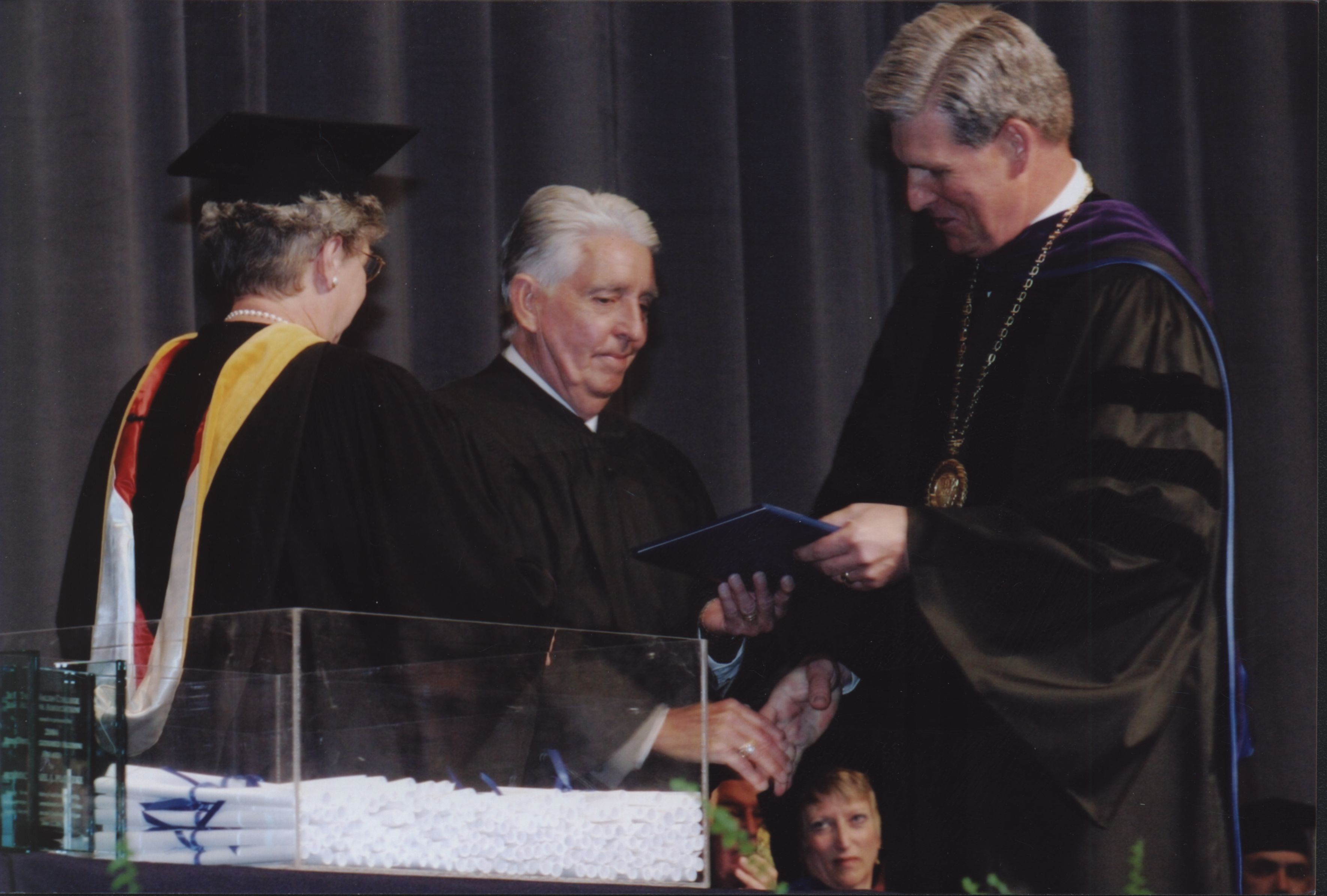 Images 1-3: Trustee Richard Pearson received his doctorate from Keith Pretty at a commencement ceremony.