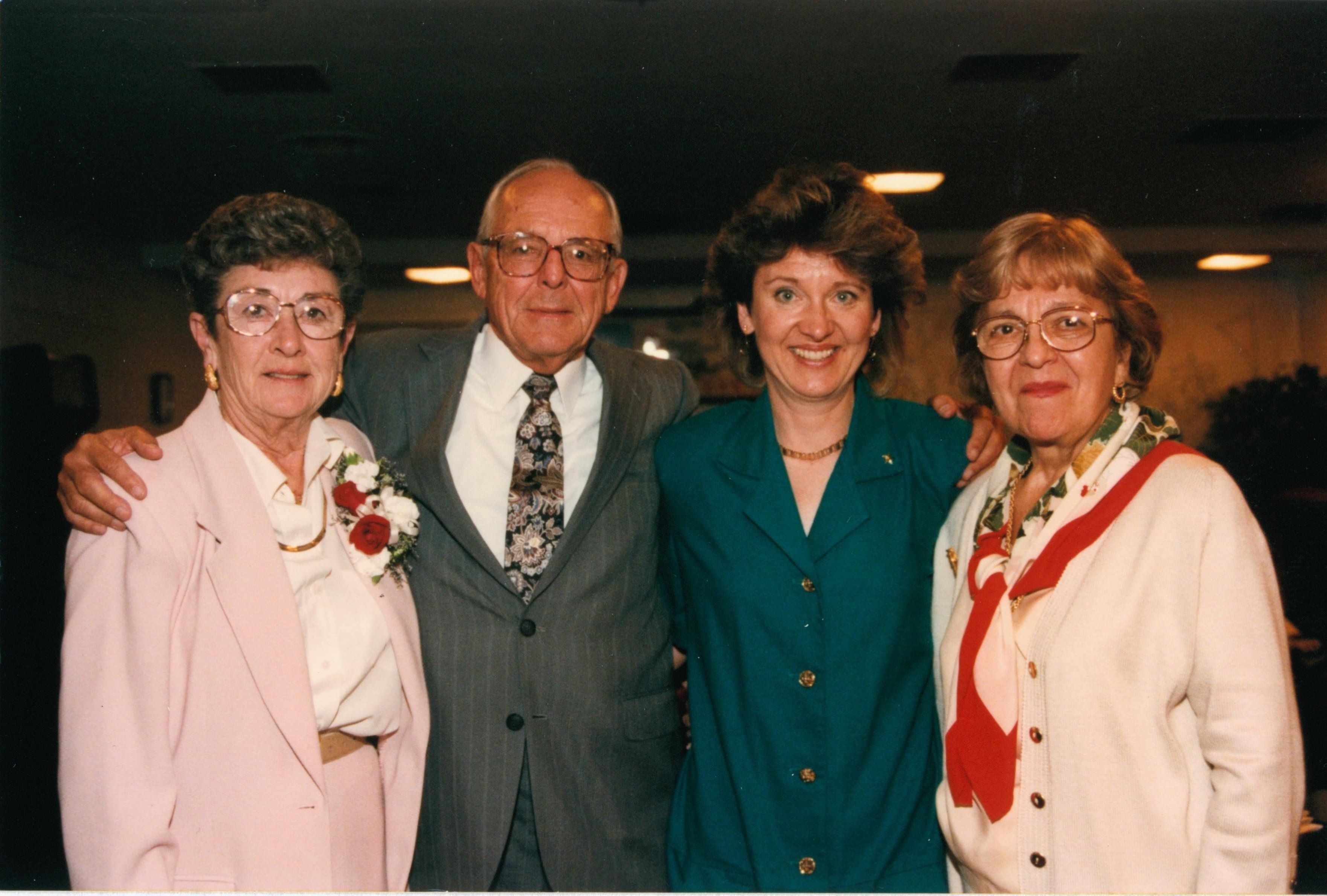 Russell E. Nelson, wife Virginia in the pink, daughter Carol Anne Imhoff, M.S.M.; Carol's husband's aunt Viola Hazjiyanis at the 1996 Commencement. (from back of photo)