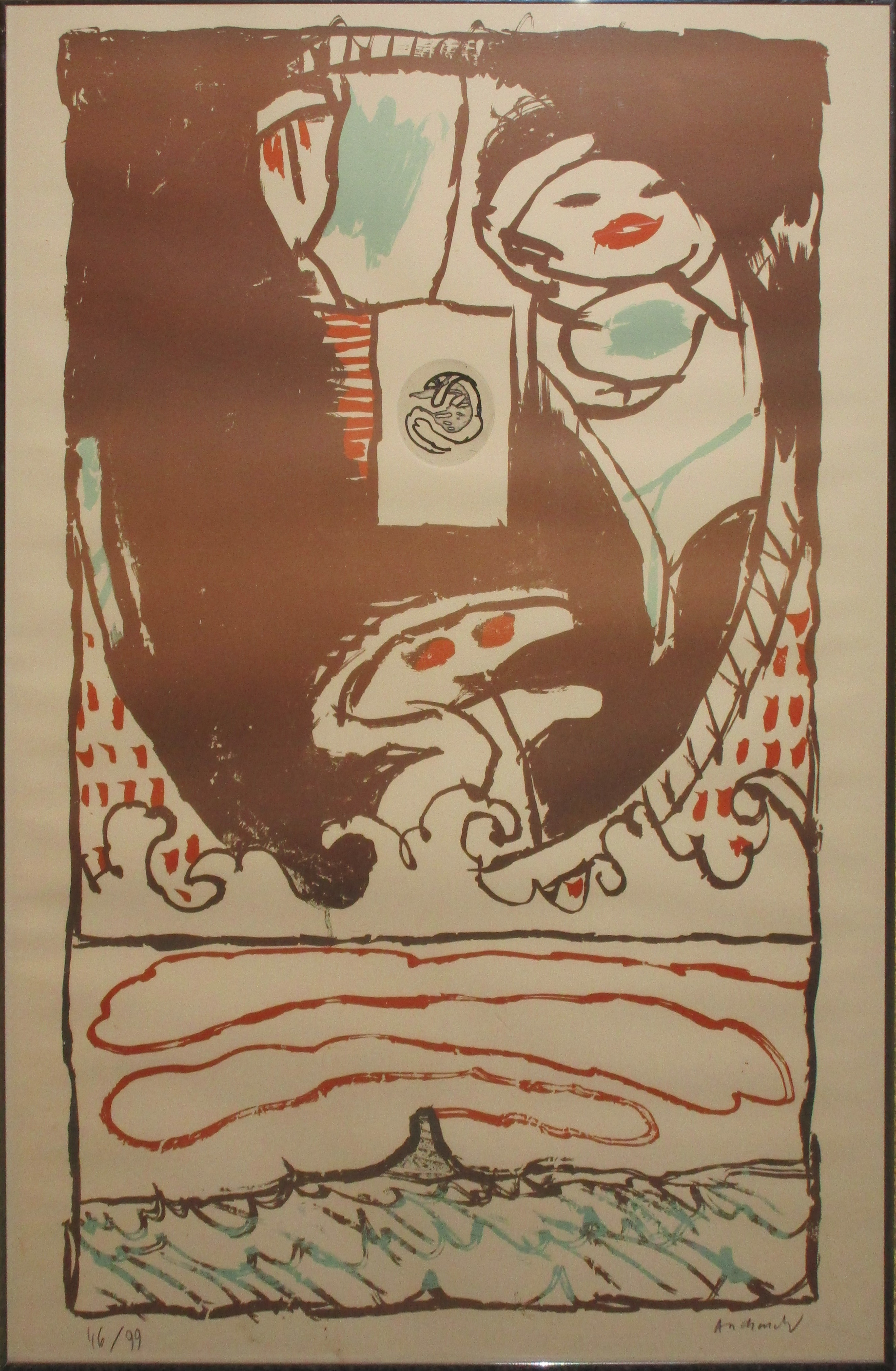 Date Created: 1999, Medium: unknown, Location: Auburn Hills Campus, Building F, near Stairwell by vending machines, Dimensions: 1,030mm x 720mm, Signature: Yes, Artwork Framed: Yes