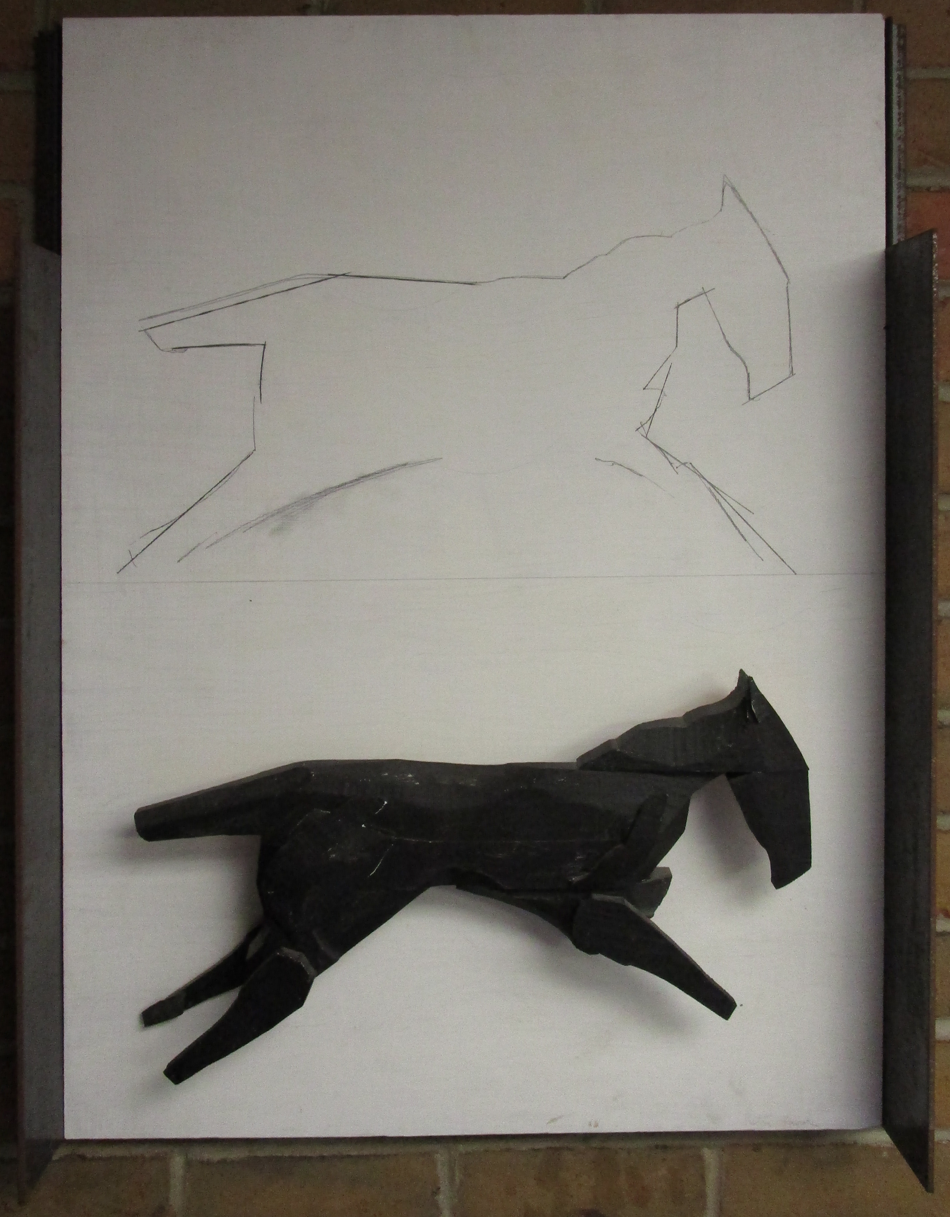 Date Created: 1995, Medium: Wood, Metal, Pencil, Location: Orchard Ridge Campus, Building L, Second Floor, near stairs, Dimensions: 820mm x 610mm, Signature: Yes, Artwork Framed: No