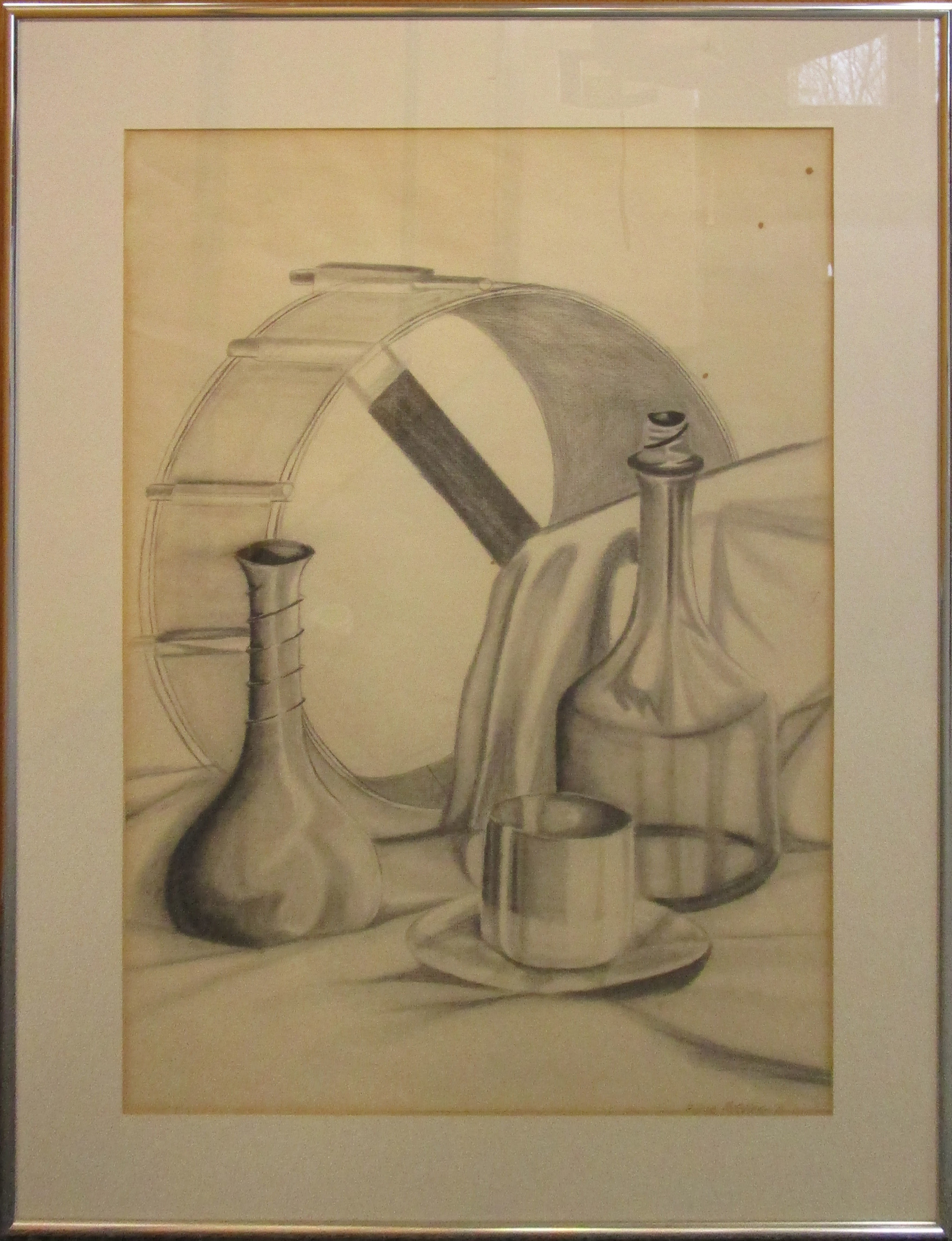 Date Created: 1971, Medium: Pencil, Charcoal, Location: Orchard Ridge Campus, Building M, Second Floor, Storage Closet, Dimensions: 690mm x 540mm, Signature: Yes, Artwork Framed: Yes